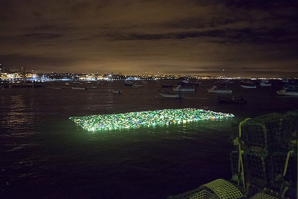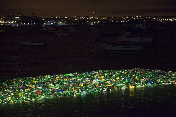 “La Isla Plastica” (or “The Plastic Island”) is a giant, 32 x 49 foot glowing sculpture that floats in the Cascais Bay in Portugal. Luzinterruptus, the guerilla art group responsible, hopes the installation will draw attention to the ever-growing issue of ocean pollution in a way that can’t be ignored. See more images below!