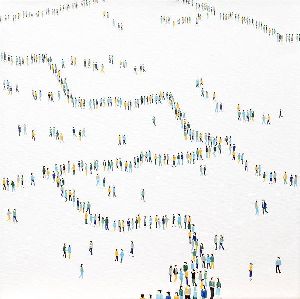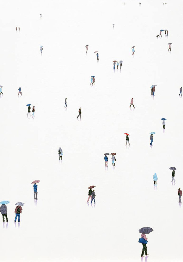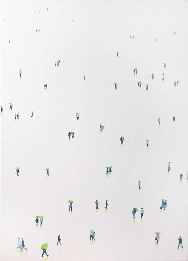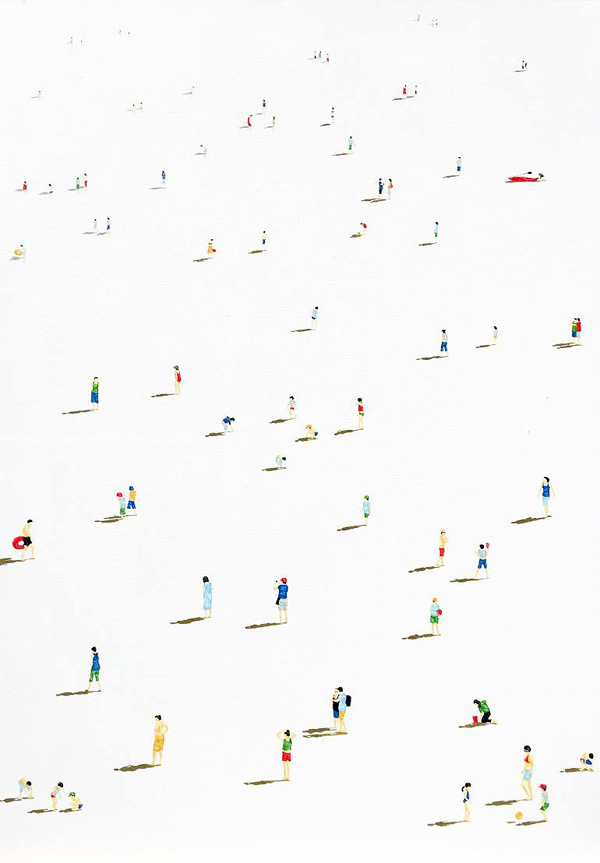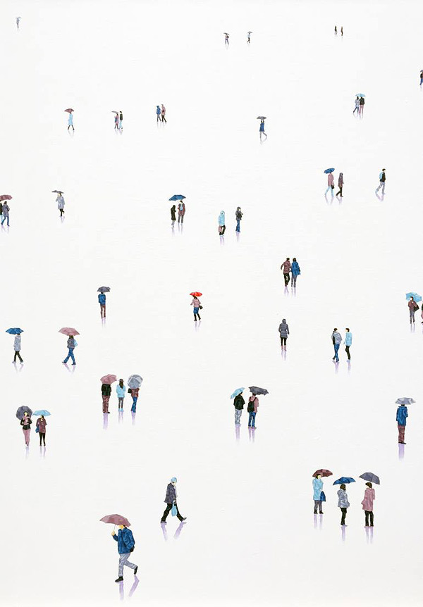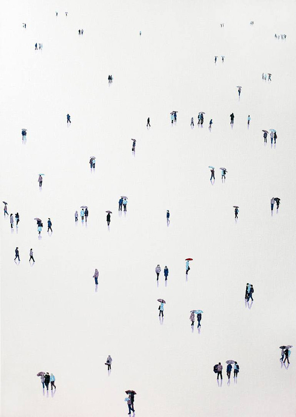 Beautifully uncrowded paintings of crowds by London-based artist Stephanie Ho. See more of Ho’s perfectly placed figures, set against minimalist backgrounds, below.