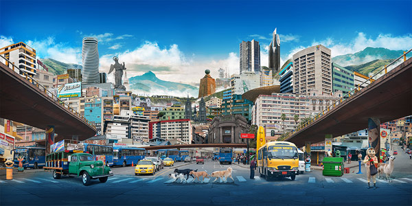I like these digitally manipulated photo collages by artist Andrew Soria. The artist shoots cityscapes and then heavily Photoshops the imagery to create new compositions in a very painterly style. More images below.