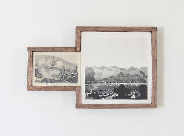 Beautifully combined images in this series by Los Angeles-based artist j.frede. Made with seemingly banal landscape photographs purchased at flea markets and arranged into a single scene, these collages effectively merge different times and places together, creating entirely new landscapes. The additional framing transforms each piece into something quite striking. More images from Fiction Landscapes below.