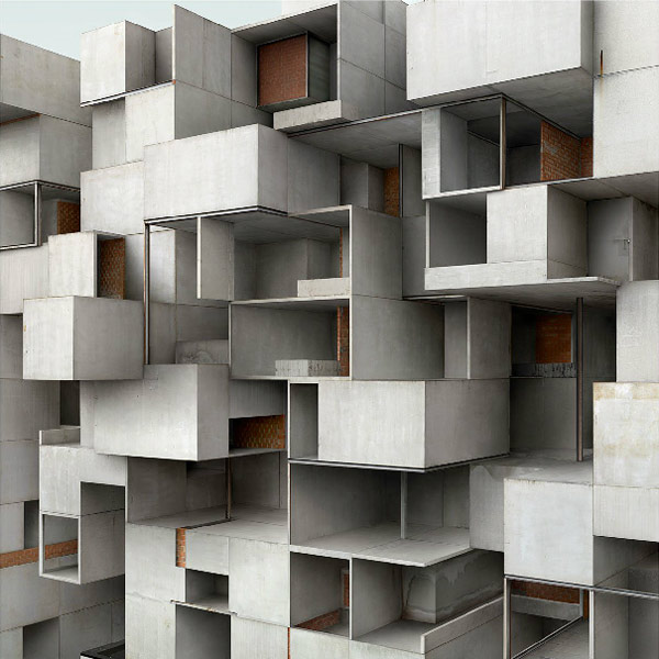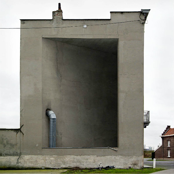 Manipulated architectural works by artist Filip Dujardin. More images below.