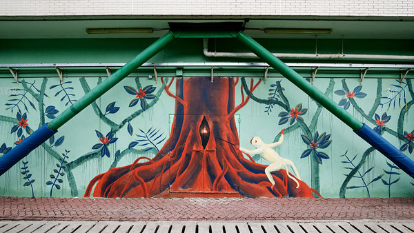 “Nature of Knowledge” a beautiful mural by artist Gian Barlo, who submitted work to our December Reader Submissions. The artwork, spanning seven walls, references Chinese mythology and is actually a critique of the current education system in Hong Kong. Have a look at more images below.