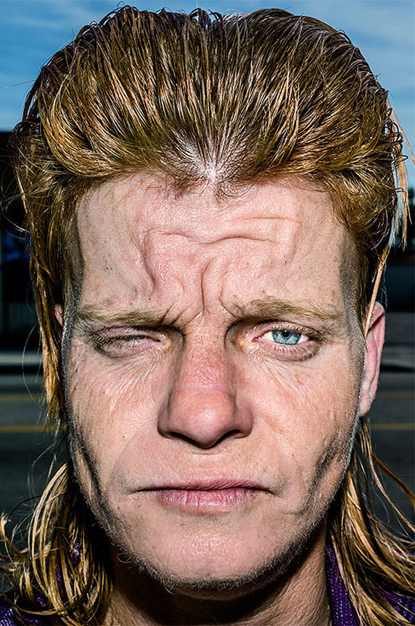 Extremely raw series of portraits by New York-based photographer Bruce Gilden. Taken between 2012 and 2014 during his travels in America, the United Kingdom and Colombia. More images below.