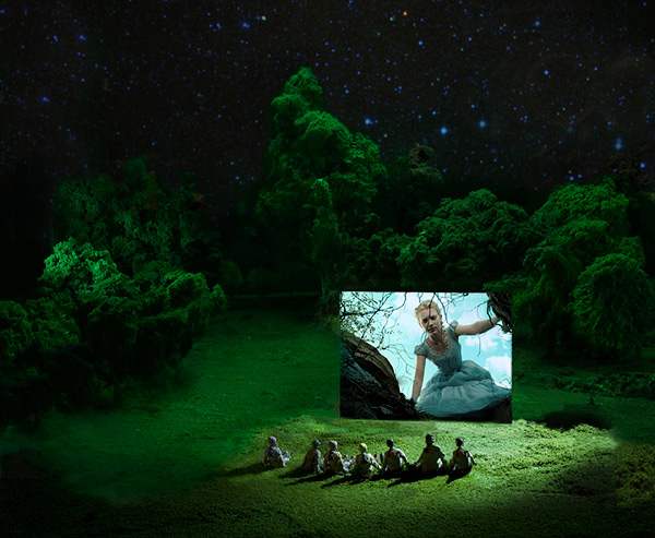Cinematic series by New York City-based artist (and former lawyer), Richard Finkelstein, features miniature figurines and carefully constructed sets to capture the experience of going to the movies. “Sitting in the Dark with Strangers” is on display at Robert Mann Gallery until January 30th, 2016. More images below.