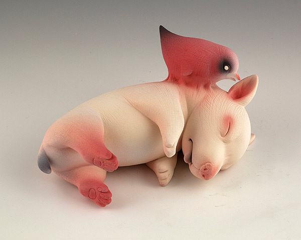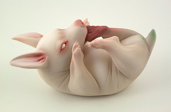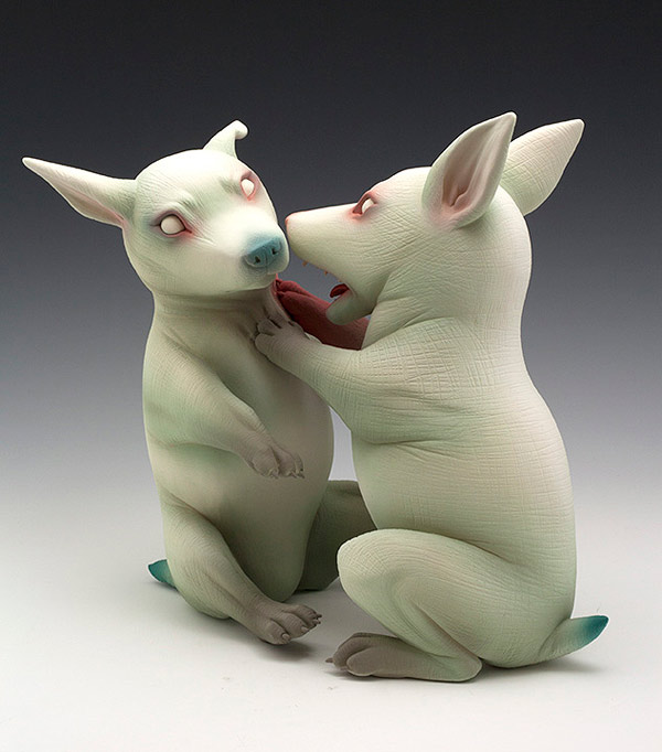 These ceramic sculptures by San Francisco-based artist Erika Sanada strike an interesting balance between creepy and cute. There’s a real tension in these works that the artist says is a struggle between joy and sorrow. More images below.
