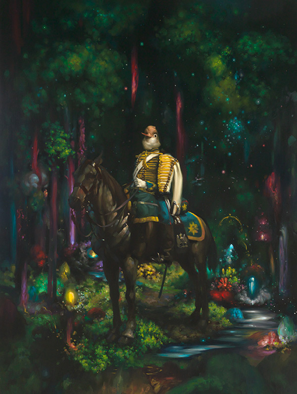 Paintings by Canadian artist Stephen Appleby-Barr whose portraits are part of the Nicholas Metivier Gallery’s latest exhibition, About Face (which opened last night and runs to the end of the month). The show also includes the work of the incredible Charles Bierk who we featured last week and was kind enough to draw Appleby-Barr’s fantastic/fantastical paintings to our attention. More images below!