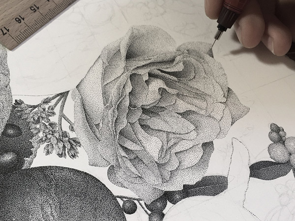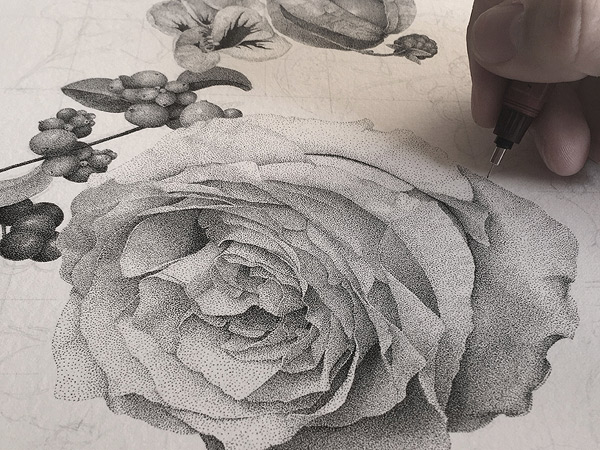 Xavier Casalta is a 23 year old artist from the South of France. His piece “Autumn” is part of a series representing the four seasons. It’s also the result of 370 hours spent meticulously inking 7 million dots to create every shape and shade! Click below for more images of Casalta’s incredible stippling technique.