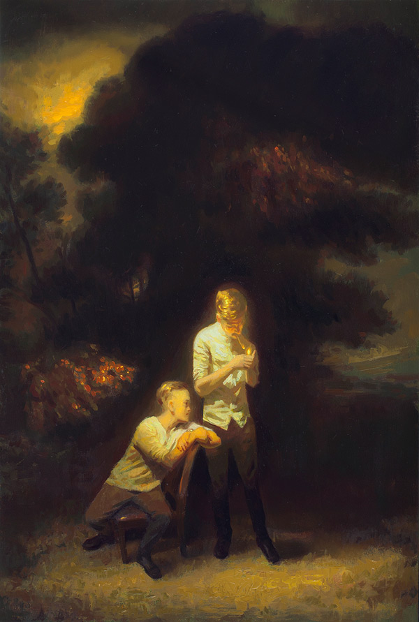 Toronto-based artist Keita Morimoto mixes classical style painting with contemporary (and slightly surreal) twists. Click here for previous post. See more images from his latest series “Strange Guild” below or on display at the Nicholas Metivier Gallery February 4-27th.