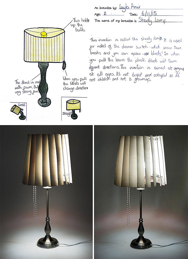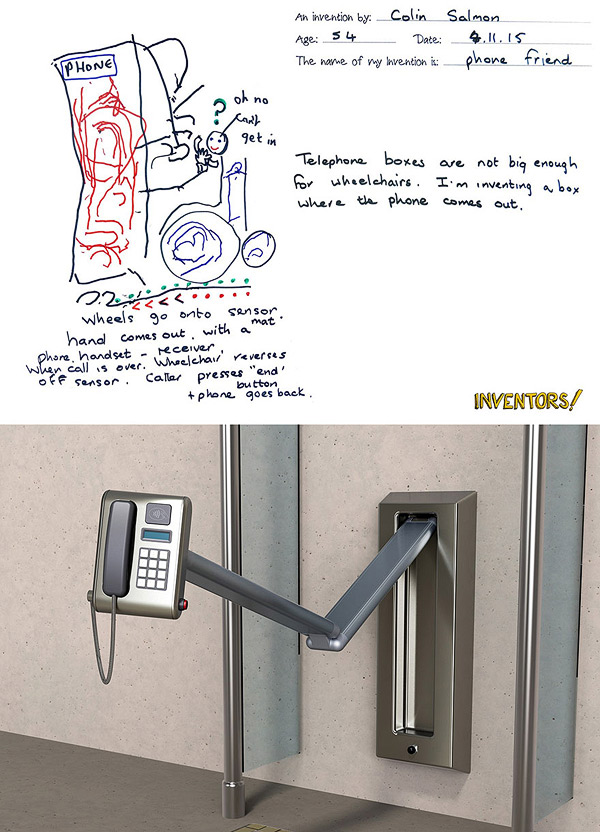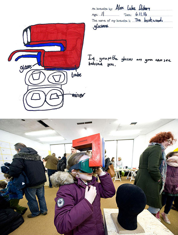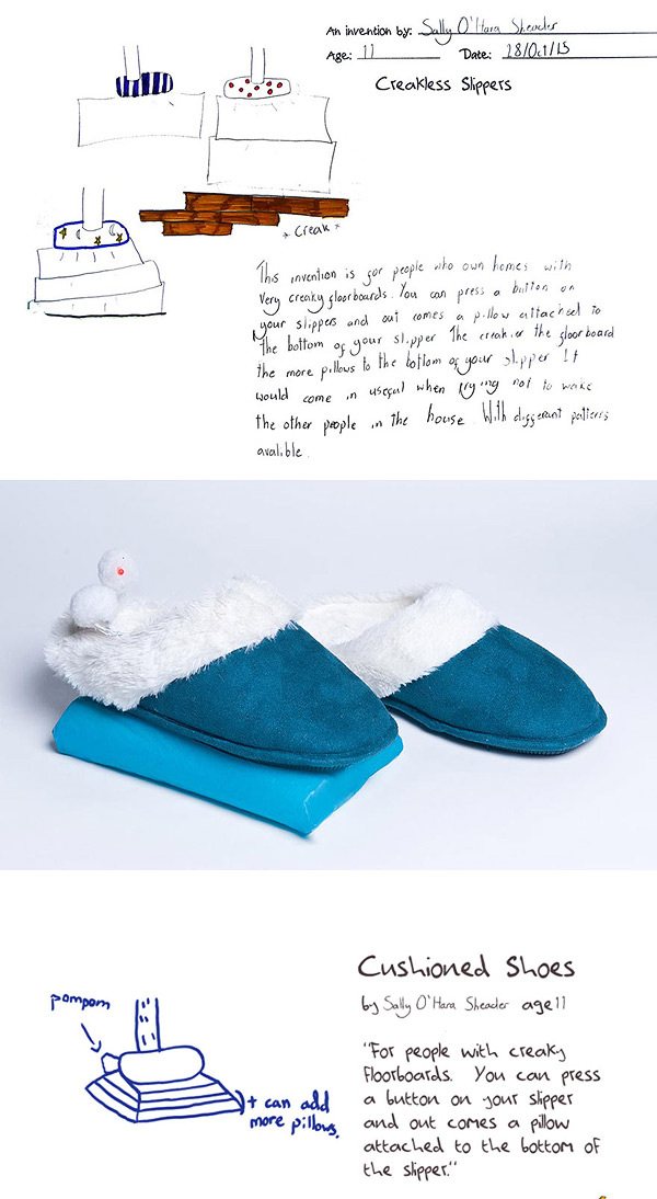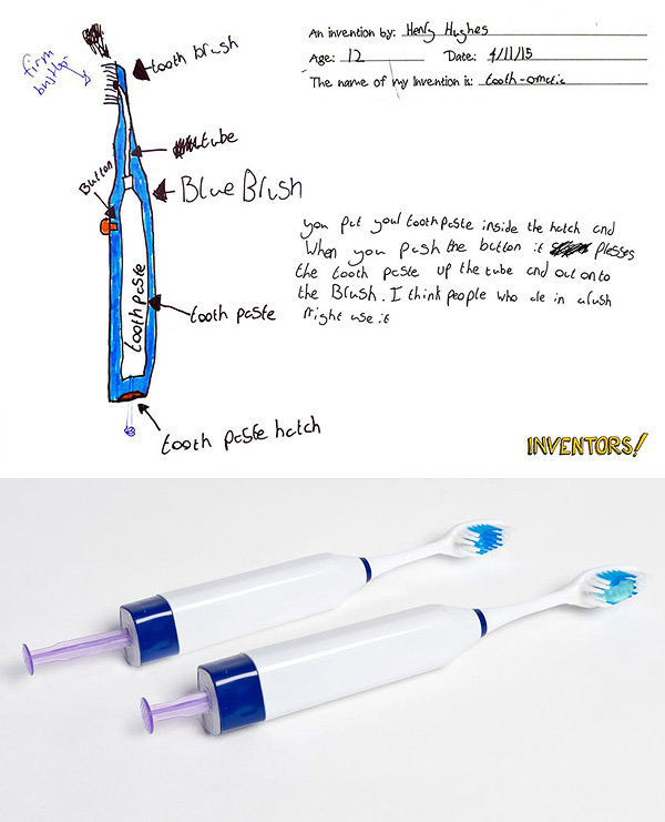 Awesome “Inventors!” project by British designer and inventor Dominic Wilcox (who we posted about last year). After gathering over 600 ideas from over 450 children across Sunderland and South Tyneside, UK, Wilcox whittled down the entries to 60 and challenged local manufacturers to create exactly what the kids envisioned. See more of the original imaginings paired with the real-life creations below!