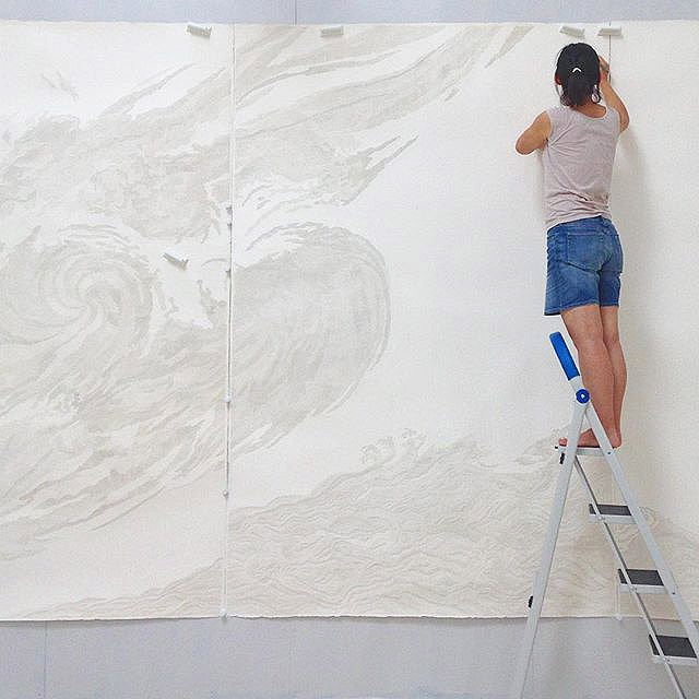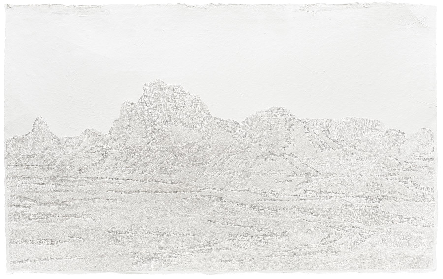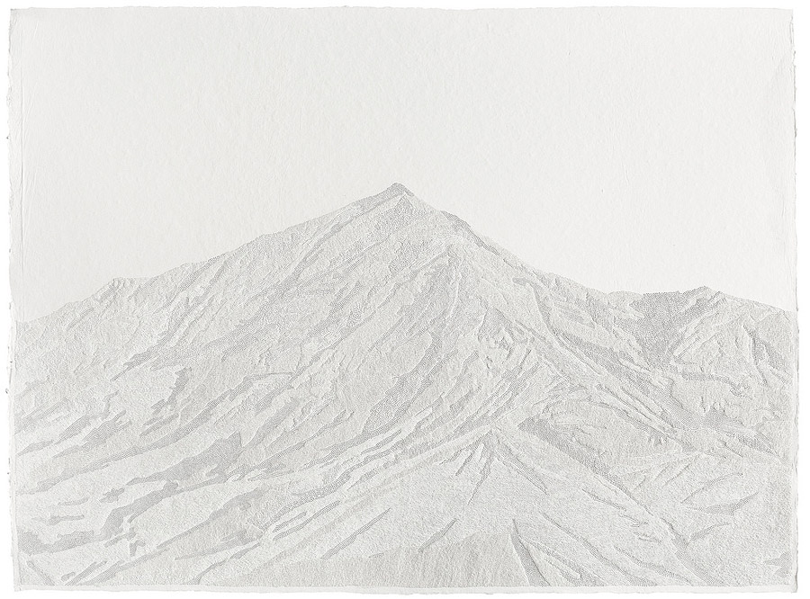 These large-scale artworks by Beijing-based artist Fu Xiaotong are the result of a painstaking process involving hundreds of thousands of holes hand-poked into massive sheets of handmade paper. Each piece is titled after the number of total pinpricks, for example: 300,800 Pinpricks, 2015 (above). You can see Xiaotong’s latest work on display in “Land of Serenity” at Chambers Fine Art in New York until March 26th. More images below.