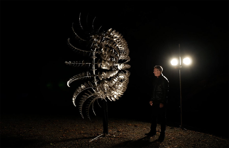 Nice feature by Great Big Story following kinetic sculptor Anthony Howe around his home-studio on Orcas Island where he lives and works with his wife/business partner. Howe’s massive sculptures have a mesmerizing, almost other-worldly quality. Check out more images below and see his pieces in action in over at Booooooom TV!