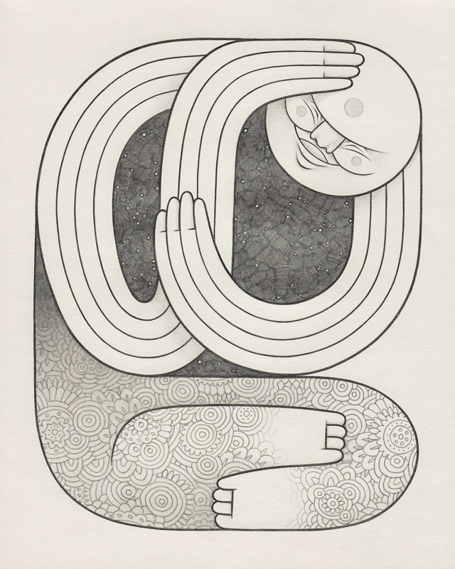 Peter Taylor continues to explore themes of balance and joy in these fantastic new pencil drawings (click here for previous post). If you happen to be in Vancouver March 19th, you can check out The Yinbow Yangbow Way at El Kartel (104 East Pender). If not, see more images below.