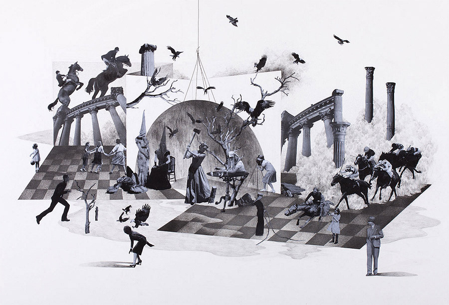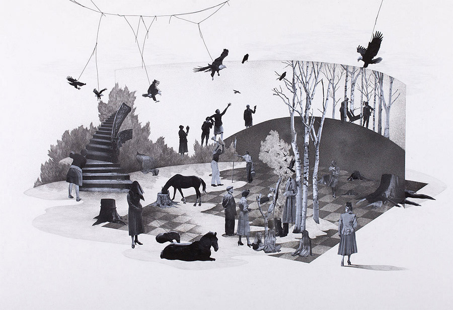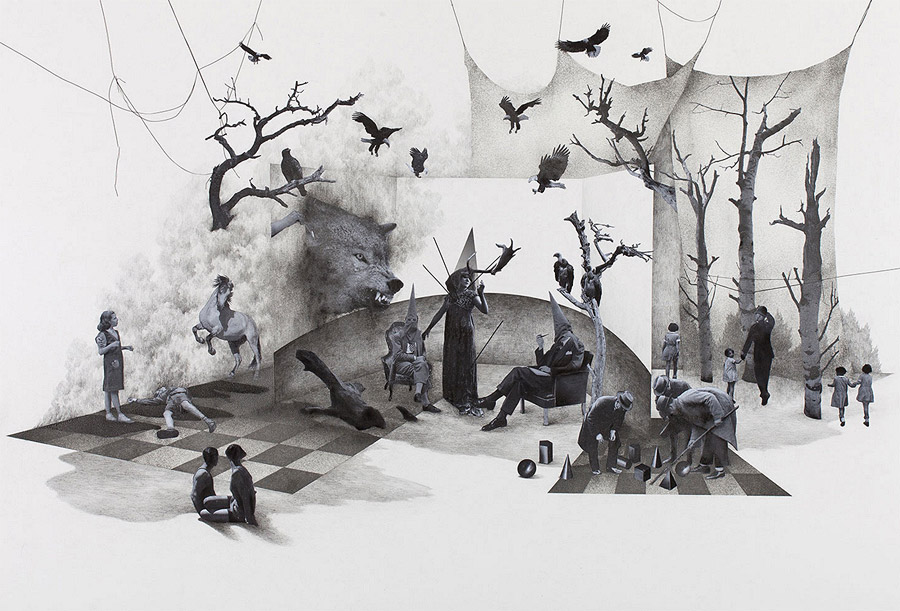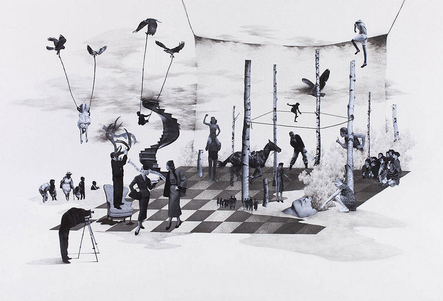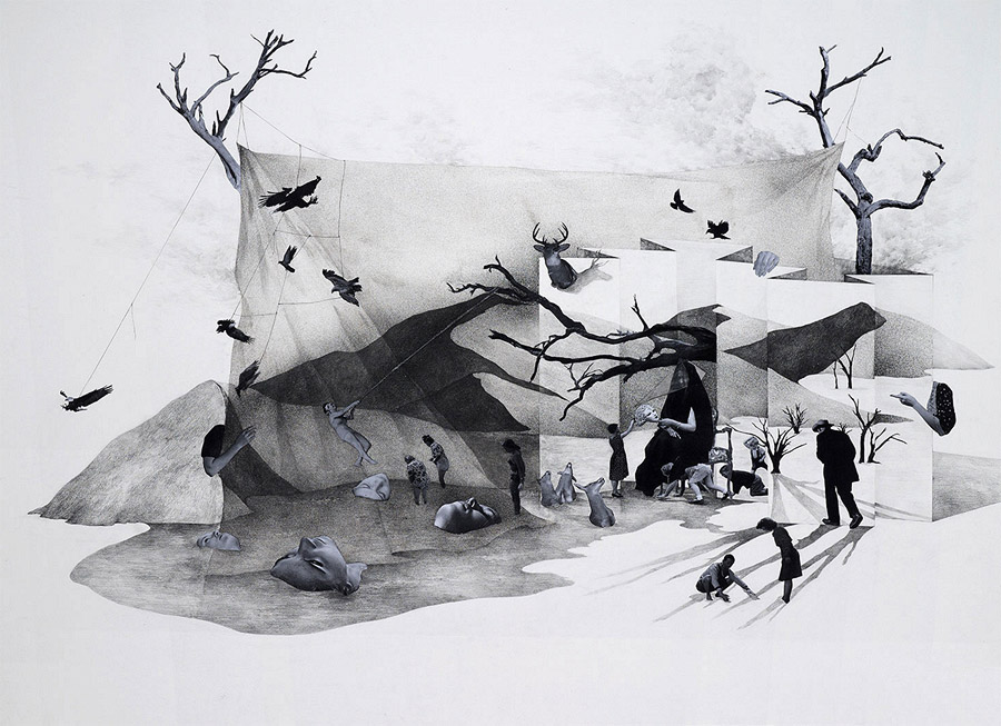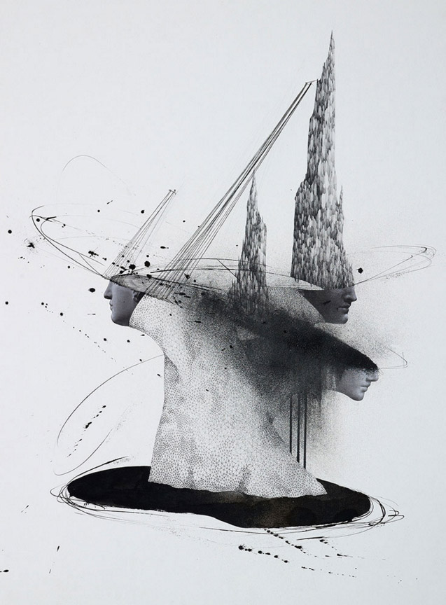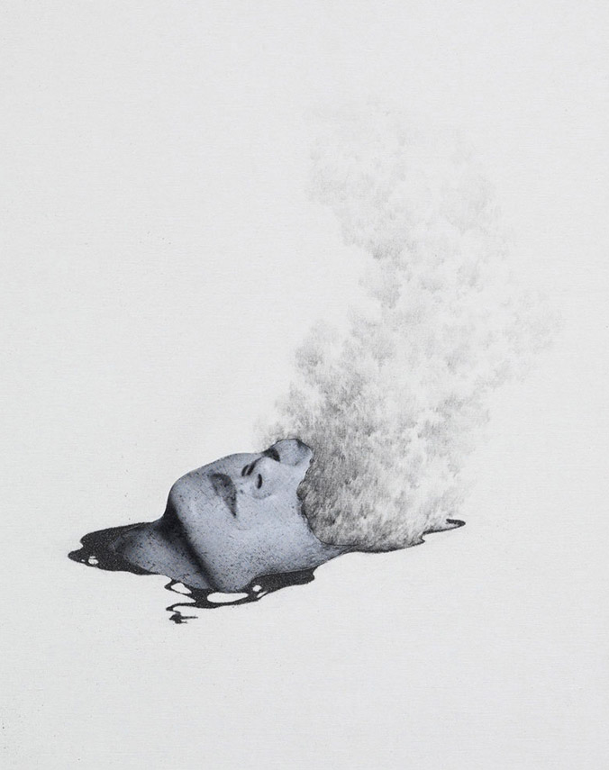 Korean artist Yeom Ji-Hee depicts states of uncontrollable emotional excess (or hysteria) as opportunities for change rather than wholly debilitating experiences. More mixed media works from “From Hysteria – To The State of Drive” below.
