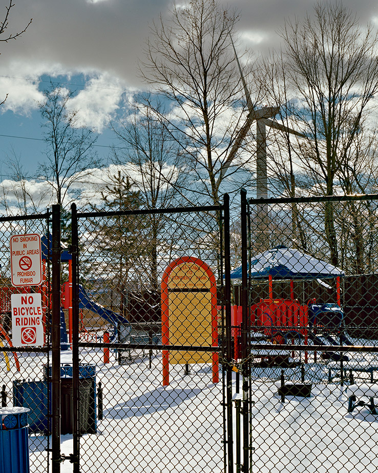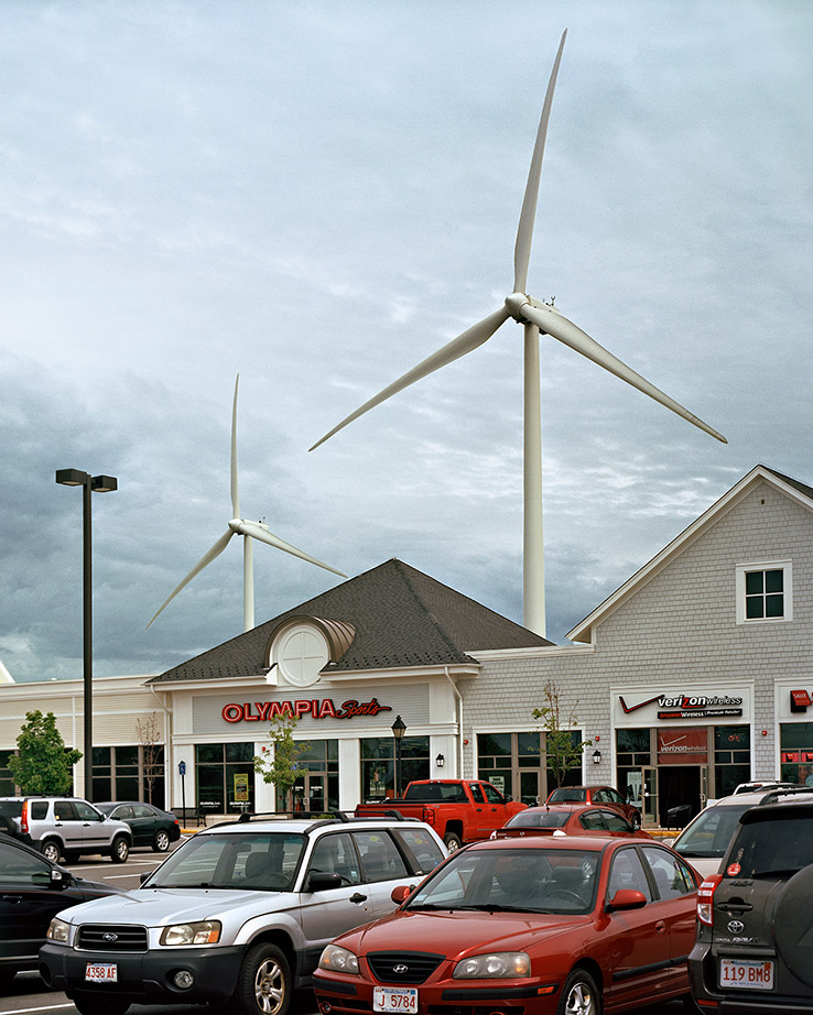 Boston-based photographer Greer Muldowney chronicles the changes to New England’s landscape in light of green energy initiatives. Due to extremely lucrative tax breaks, the abrupt appearance of wind turbines in certain areas can’t help but draw attention to developers’ opportunism more than their commitment to the environment. Some images are so awkward you’d think they were photoshopped. See more from “Urban Turbines” below.