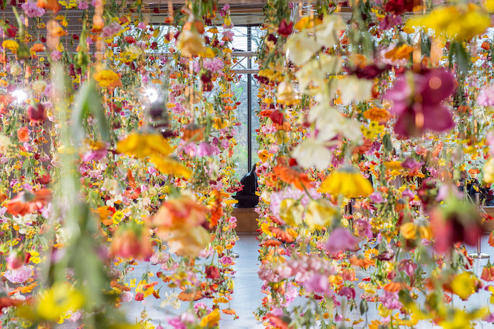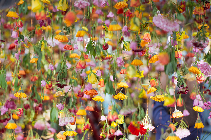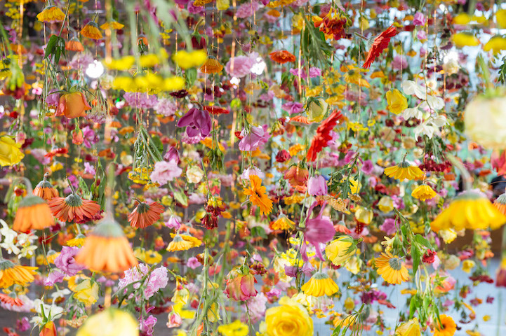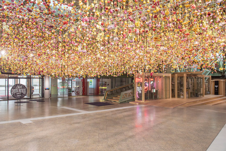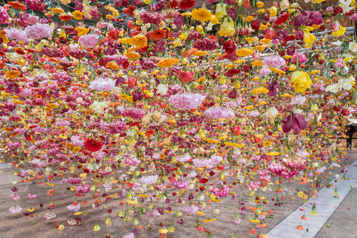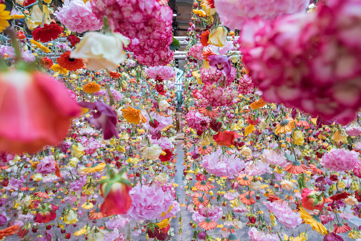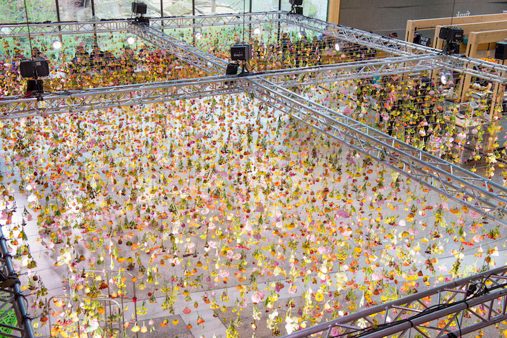 Over 30,000 flowers hang in the atrium of Bikini Berlin thanks to London-based artist Rebecca Louise Law’s latest installation. A selection of carnations, roses, orchids etc. (all hand-cut) will gradually change in smell and colour over the course of the display which runs until May 1st. See more images from Garten below!