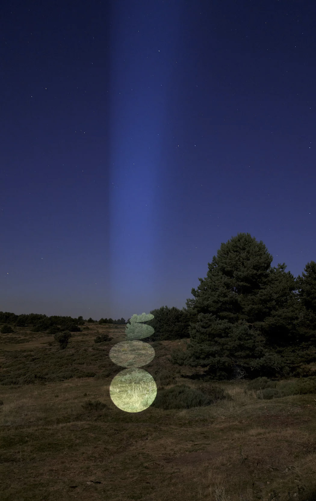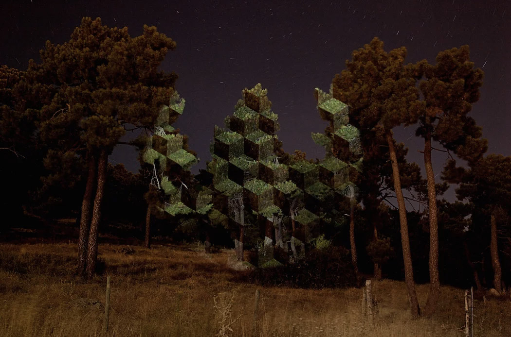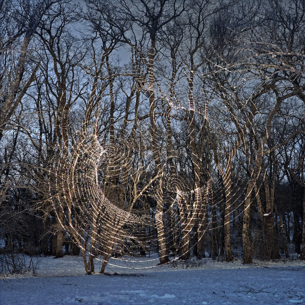 Artist Javier Riera projects beams of light onto various landscapes, creating installations that explore the link between nature and geometry. More images below.