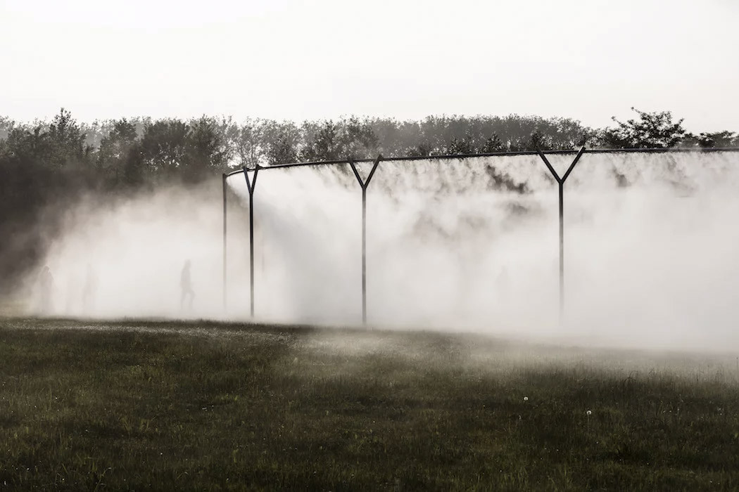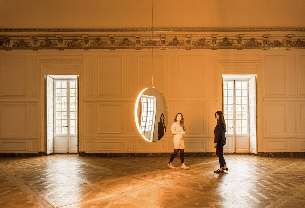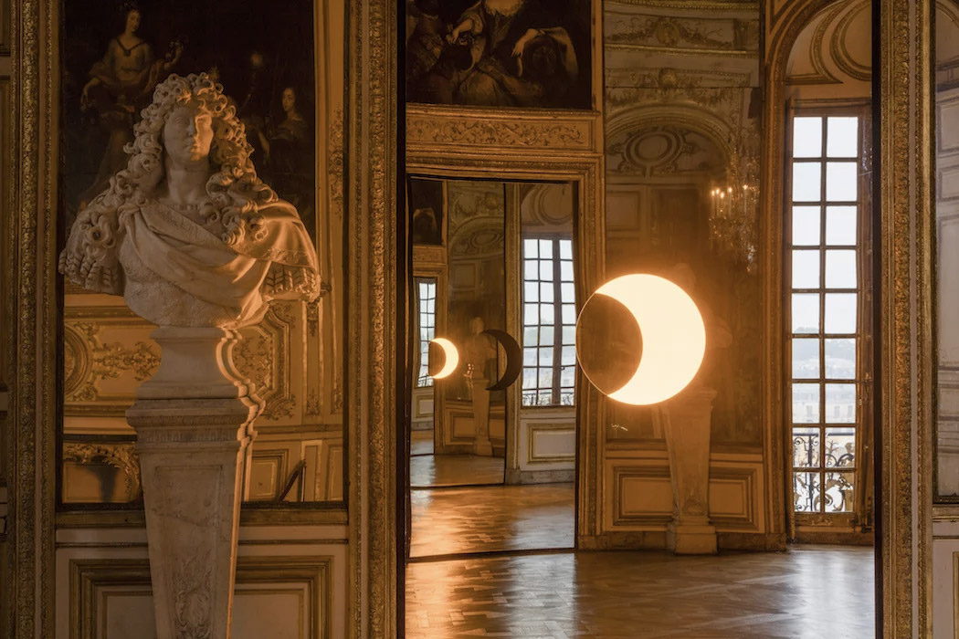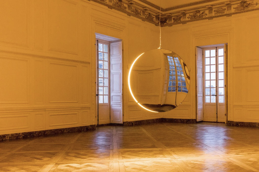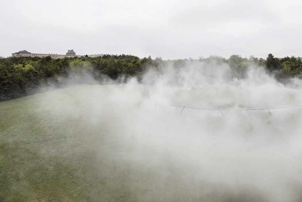 Danish-Icelandic artist Olafur Eliasson has set up a series of stunning installations in and around the Palace of Versailles in France. Utilizing the Palace’s architecture, the outdoor pieces explore different states of water (liquid, fog and ice), while the indoor series encourages visitors to participate in their own illumination with various interactive optics. See more images below or at Versailles until October 30th.
