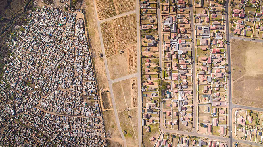 Cape Town-based photographer Johnny Miller reveals distinct lines between rich and poor in a striking (and unsettling) series of photographs. Taken using drones, the aerial perspective presents the harsh reality of past Apartheid policies and the continued disparity in a way that can’t be ignored. Check out more images from “Unequal Scenes” below.
