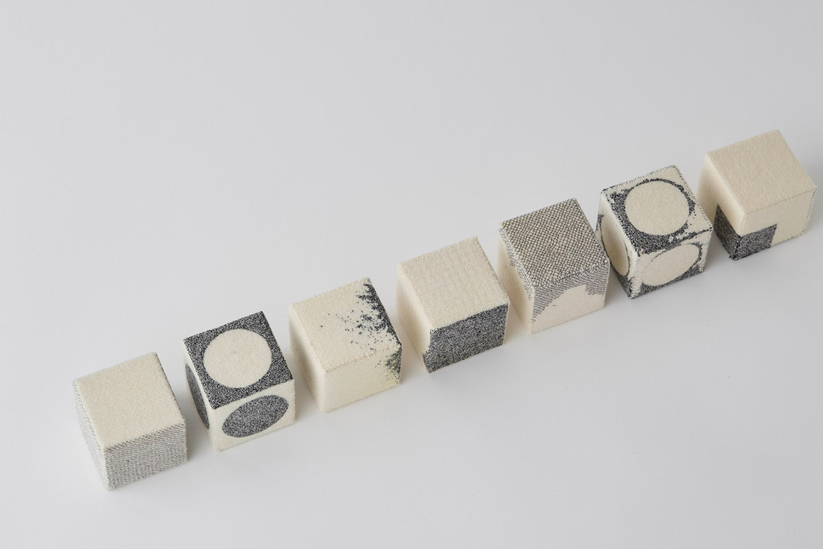 London-based artist Richard McVetis painstakingly hand-stitches intricate patterns of dots and crosses onto wool cubes in an effort to turn the passage of time into something that can be seen and touched. More images from “In Pursuit of Time” below.