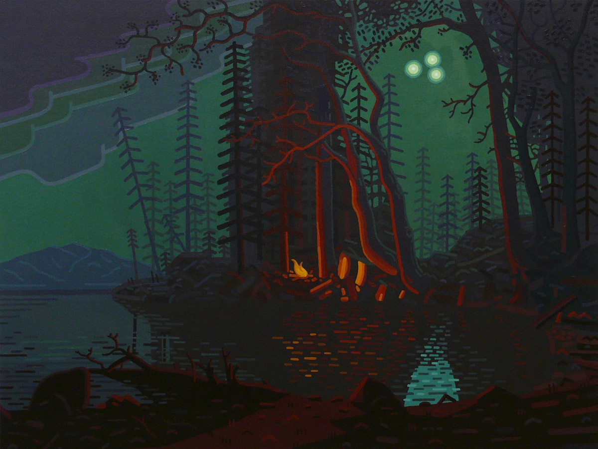 A selection of paintings by Seattle-based artist Cable Griffith, whose style is inspired by early video game graphics. More images from his extraterrestrial series, “Sightings”, below.