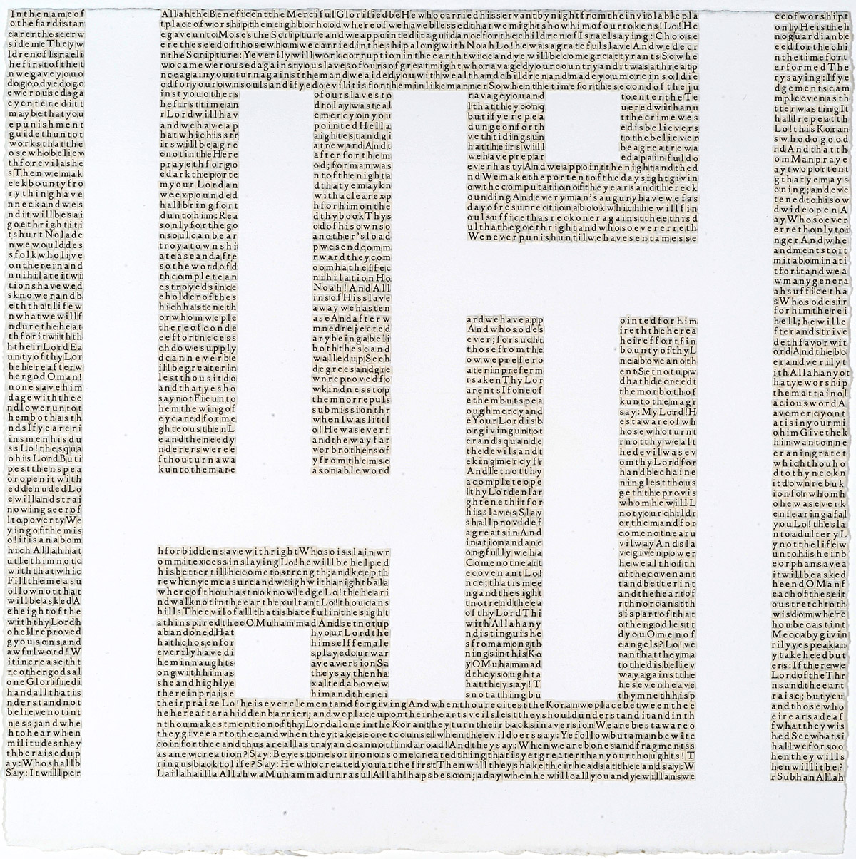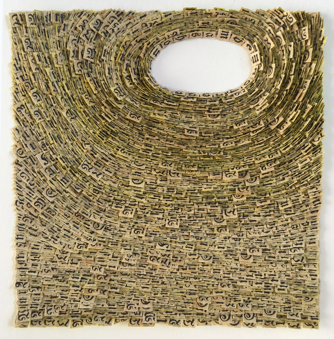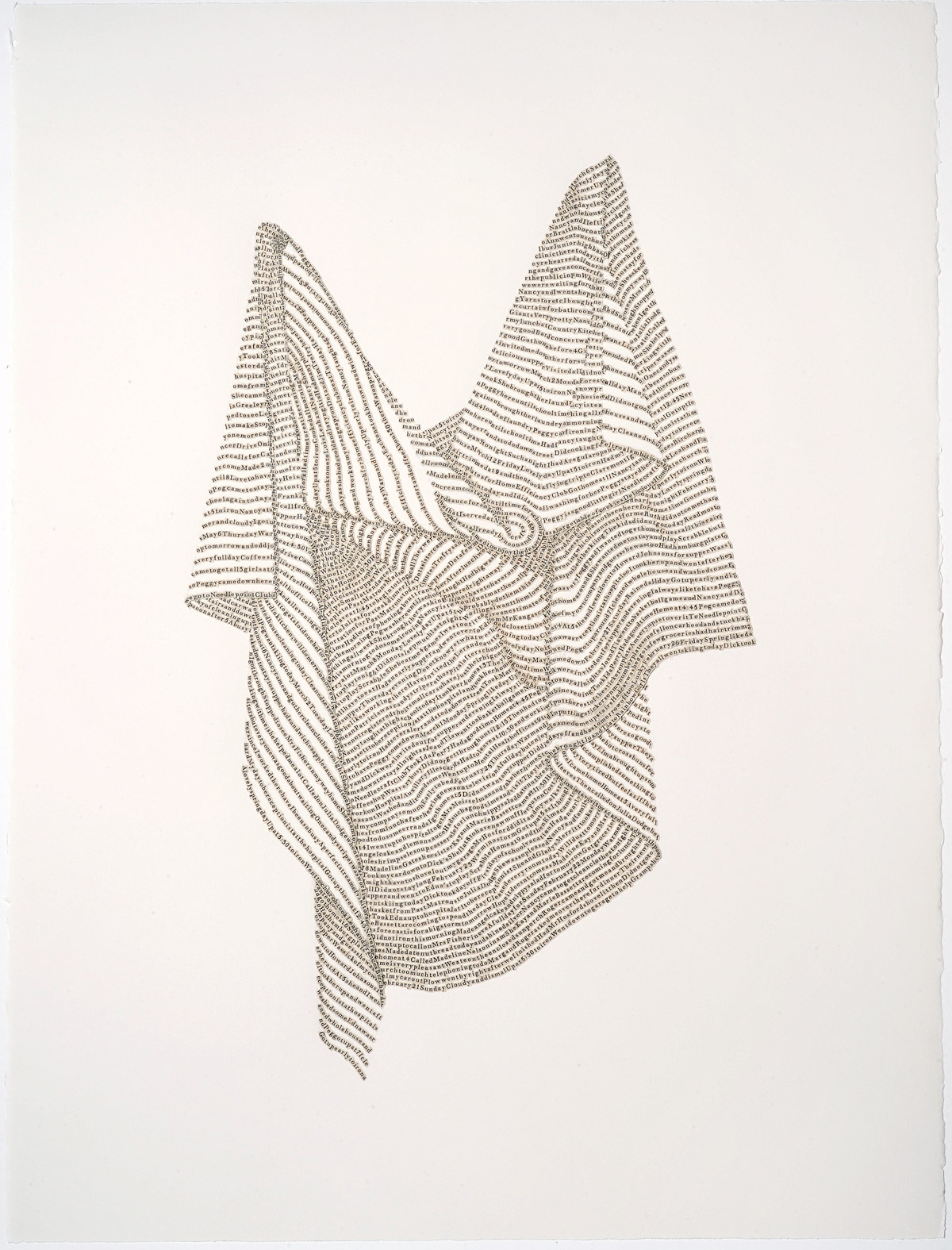 A selection of artwork made from deconstructed texts by Brooklyn-based artist Meg Hitchcock. See more images below.