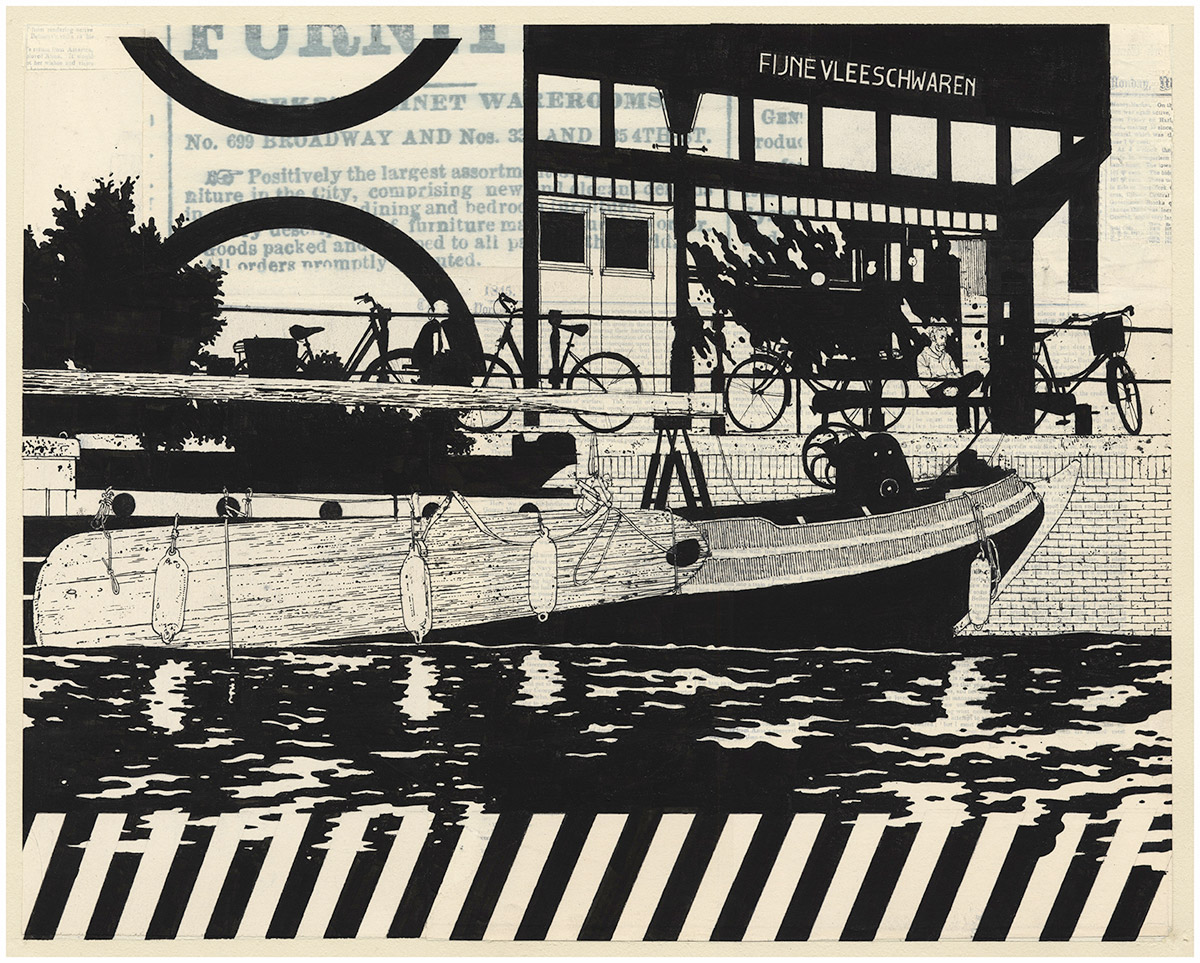 Amsterdam-based Andenken Gallery is hosting concurrent solo exhibitions of American artists Evan Hecox and Drew Leshko. “Northern” showcases Hecox’s ongoing series of paintings based on photos from his trip through Iceland and the Netherlands last year while Leshko’s “Heaven is Whenever” captures the transition and decay of urban life through dollhouse-scale sculptures made from wood and paper.