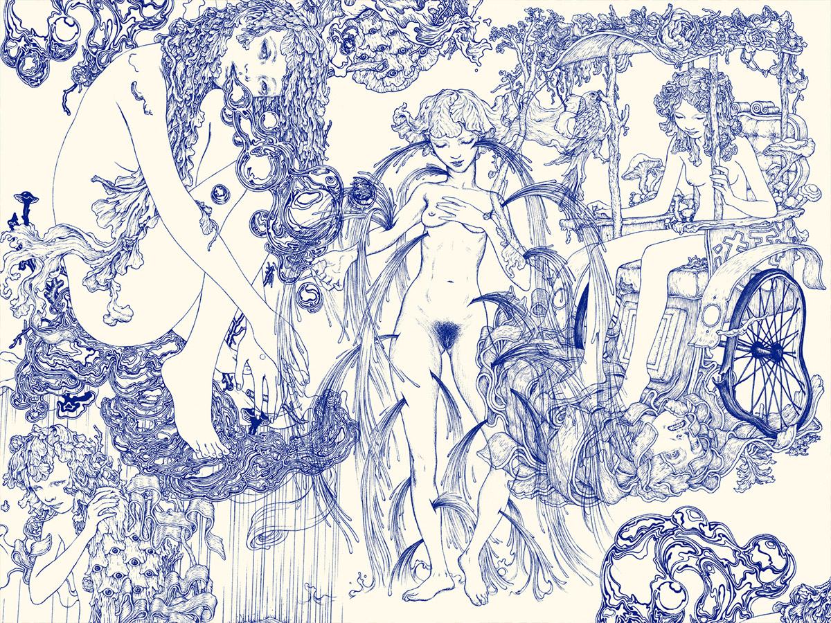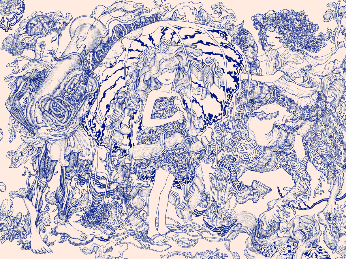 If you’re headed out to ComplexCon in Long Beach this weekend, be sure to check out artist James Jean‘s interactive installation as part of POW! WOW!‘s booth. “Veils” invites viewers to peel away 4,800 images (and take the art with them) to slowly transform the work over the course of the event. As the veils are lifted, more images are revealed beneath until there is nothing left. Have a look at a few more images used in the installation below.