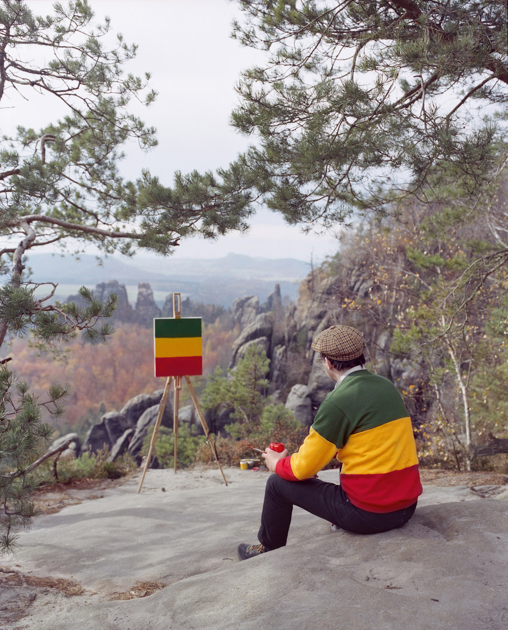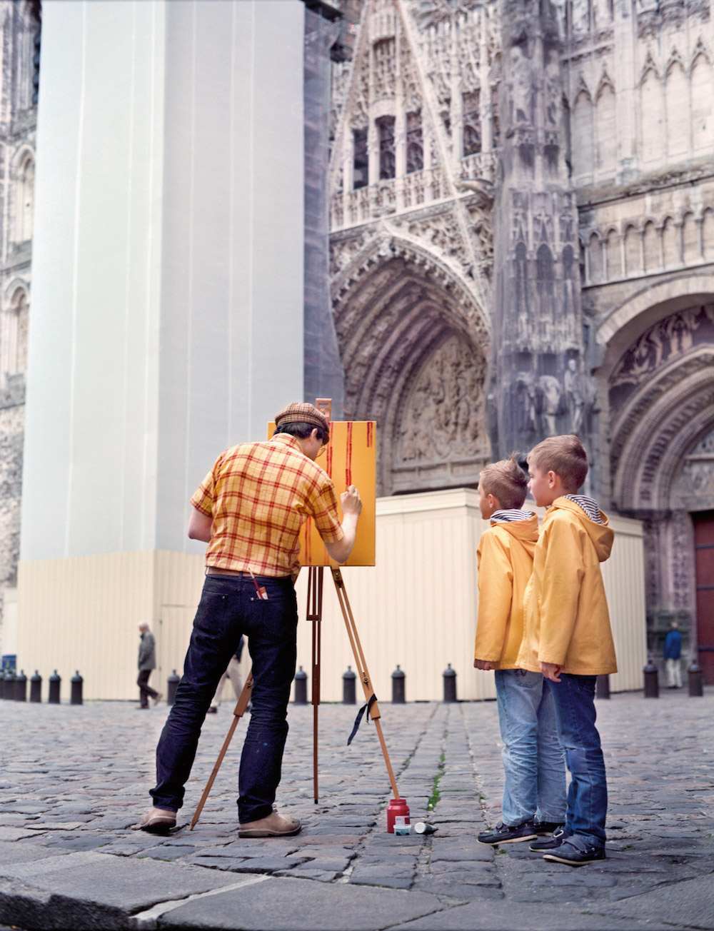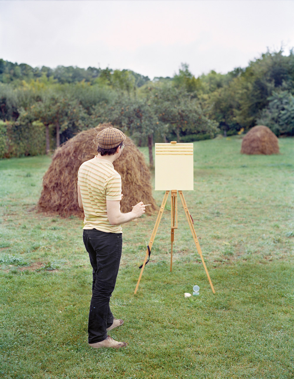 Artist Hank Schmidt in der Beek and photographer Fabian Schubert offer a hilarious take on classic outdoor painting. In their collaboration, Und im Sommer tu ich malen (“And in the Summer, I do paint”), Schubert photographs in der Beek at various locations famously captured by artists like Cézanne and Monet. However, rather than focusing on the scenic landscape around him, in der Beek is seen painting the pattern of his shirt.
