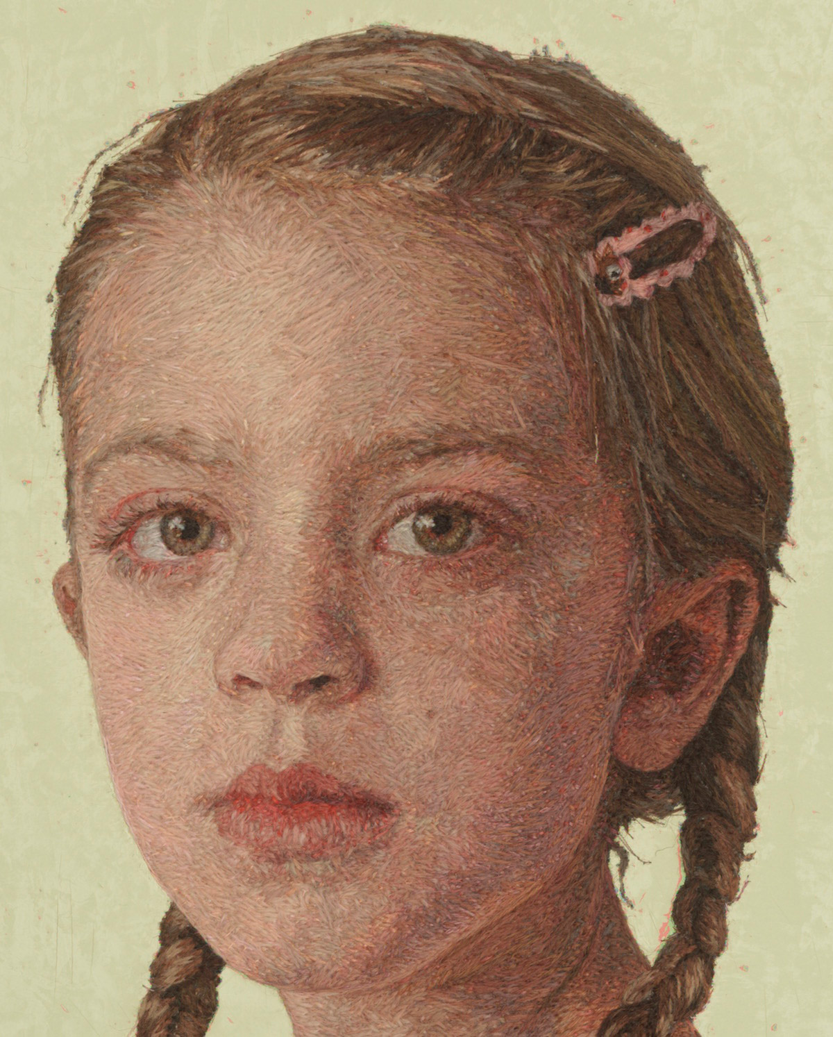 Another batch of portraits by St. Louis-based artist Cayce Zavaglia (previously featured here). Originally trained as a painter, Zavaglia’s embroideries are all meticulously hand sewn using a personally developed technique that resembles the brushstrokes of classical oil painting.