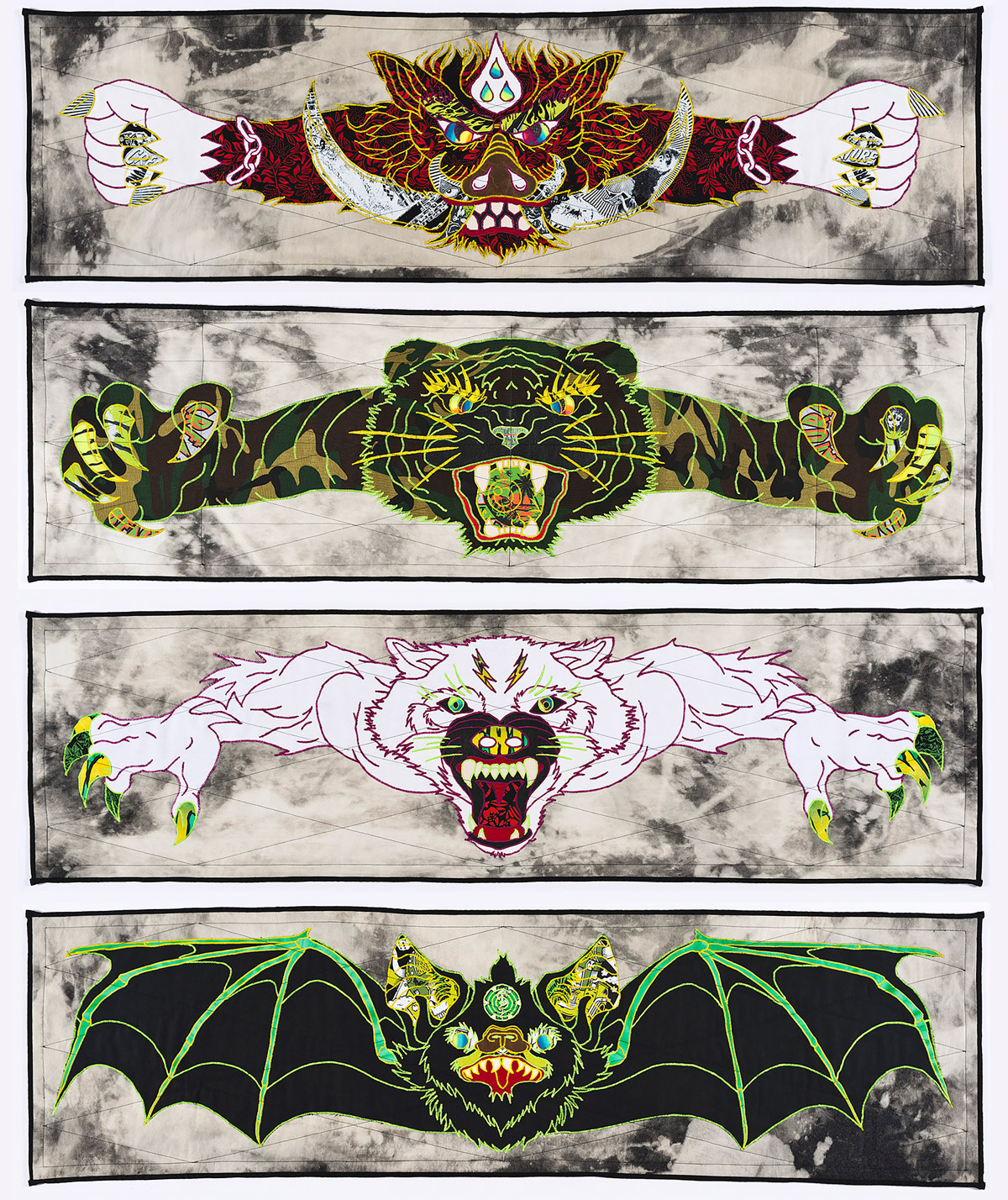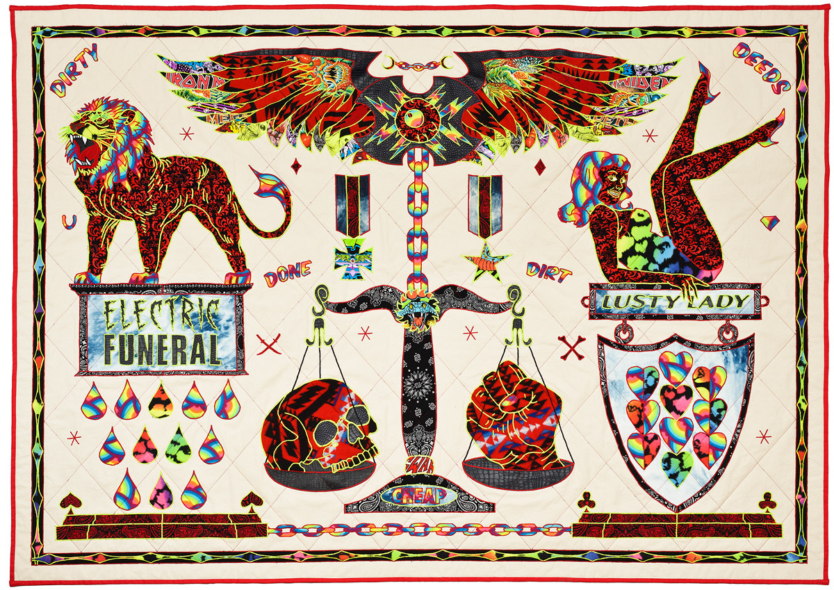Another batch of edgy textiles by San Francisco-based artist and heavy-metal quilt maker Ben Venom. Click here for previous post. See more images and video below!