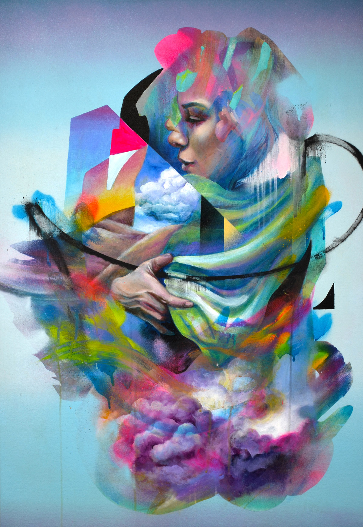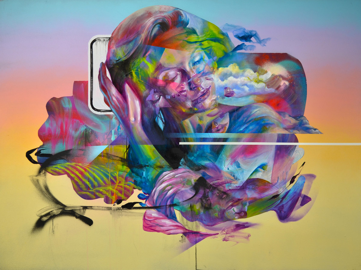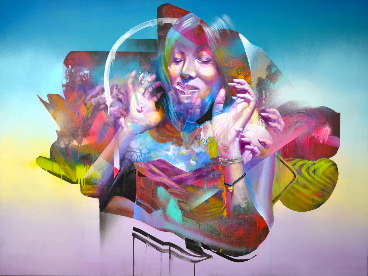 New work from Allison Torneros aka Hueman (click here for previous posts). A colourful exploration of multiplicity, “Hyperlimbo” involves a series of characters caught between different worlds and ways of being. See more images below or on display at KP Projects in Los Angeles until February 4th!