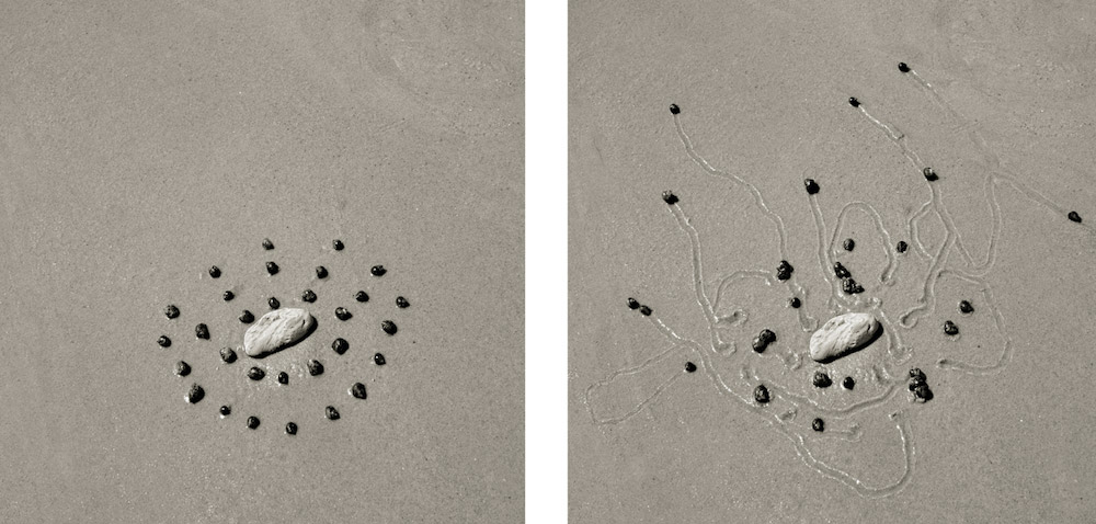 Massachusetts-based photographer Daniel Ranalli has spent more than 20 years on his “Snail Drawings,” a series which consists of one image of neatly configured snails and a second image of the unique patterns made when the snails were left to their own devices.