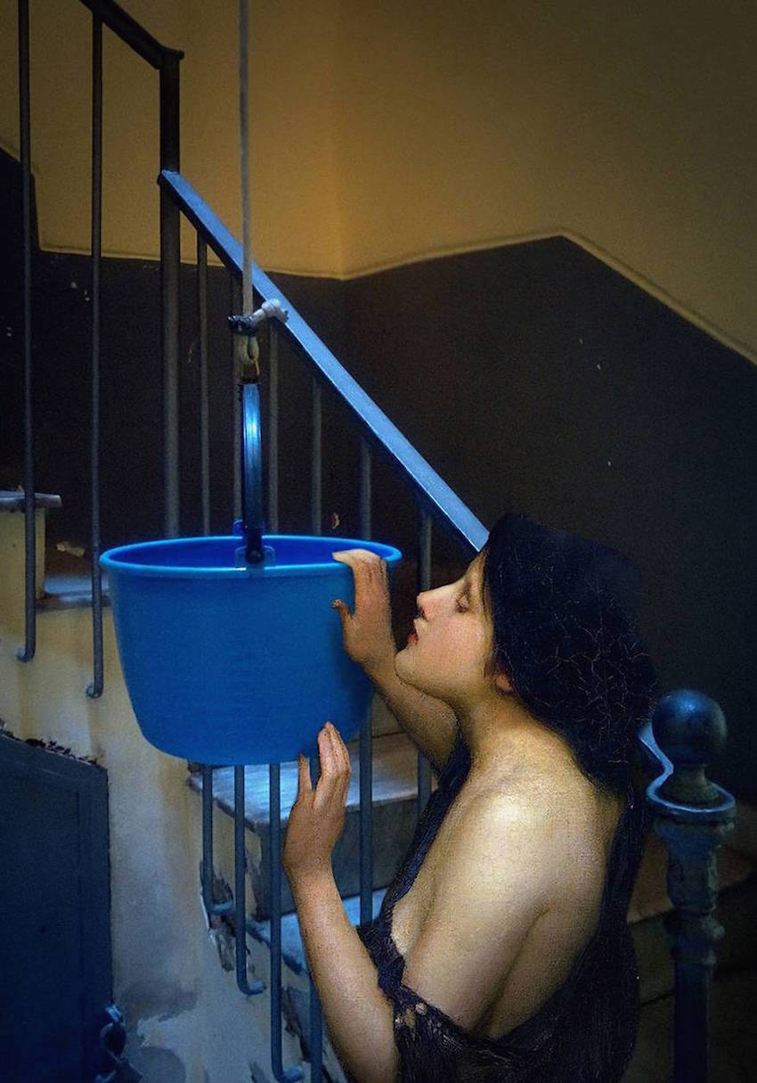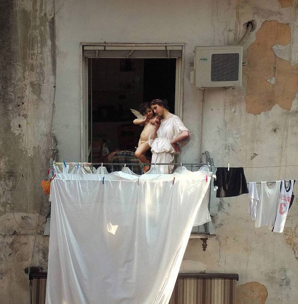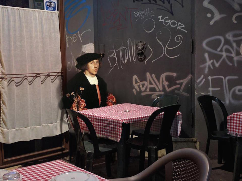 Ukranian artist and designer Alexey Kondakov merges figures from classical oil paintings with photographic scenes of modern Naples. See more amusing juxtapositions from “Art History in Contemporary Life” below.