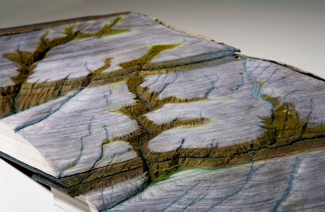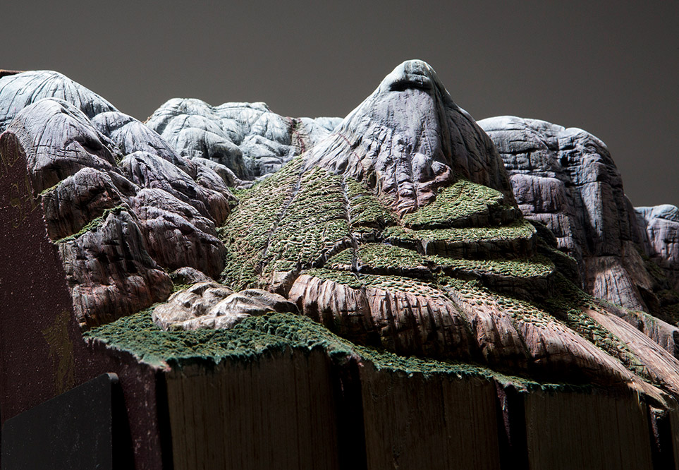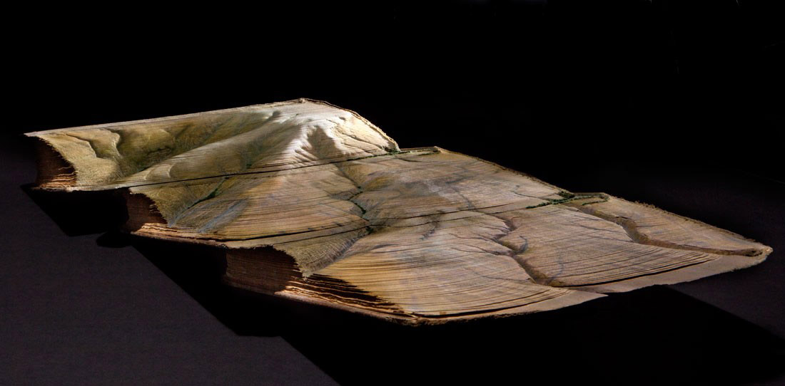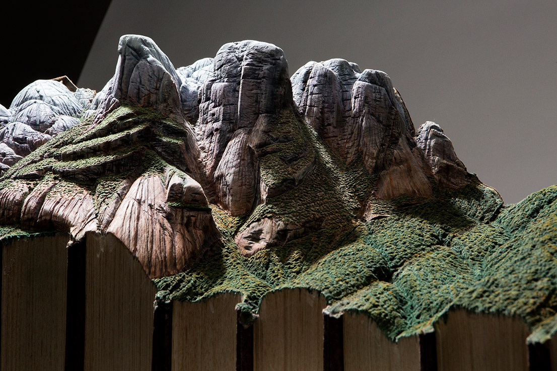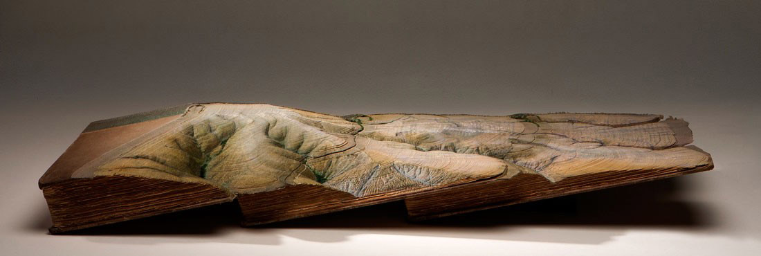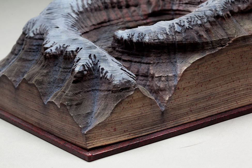 Another batch of carved books by Montréal-based artist Guy Laramée (click here for previous posts). See more incredibly detailed landscapes below!