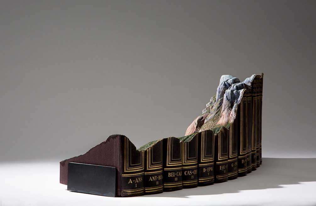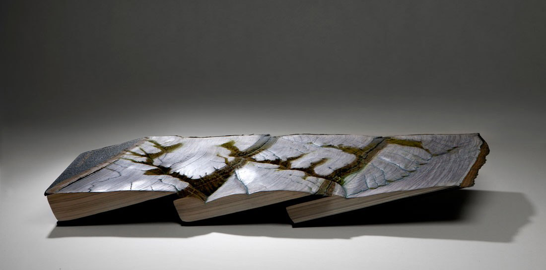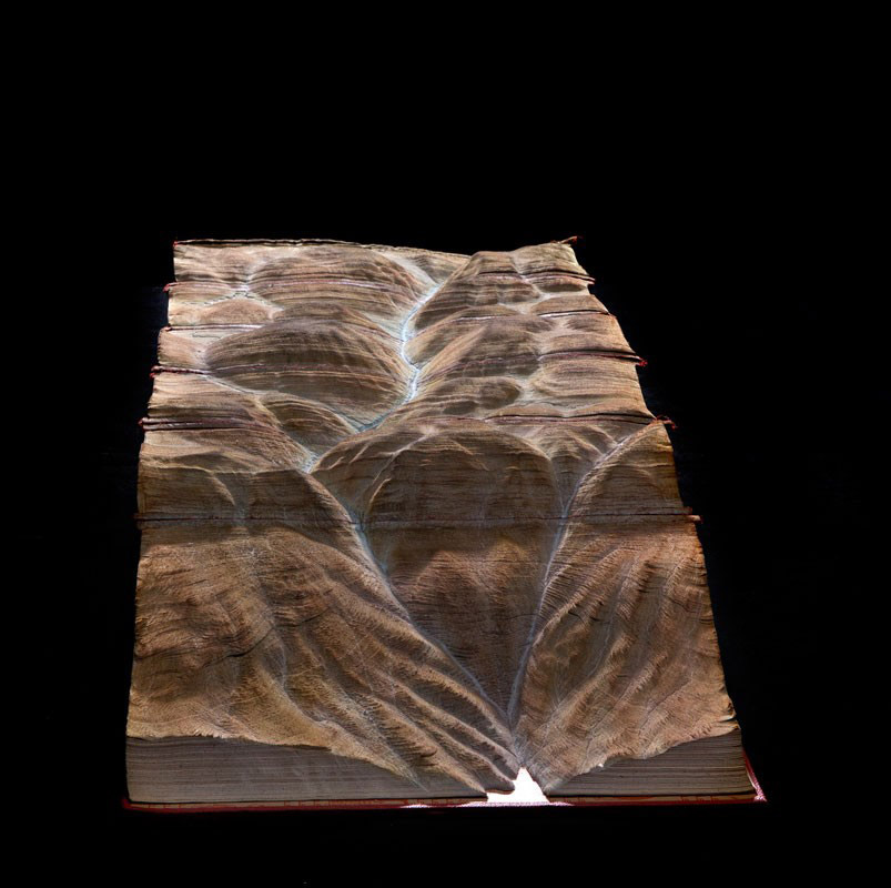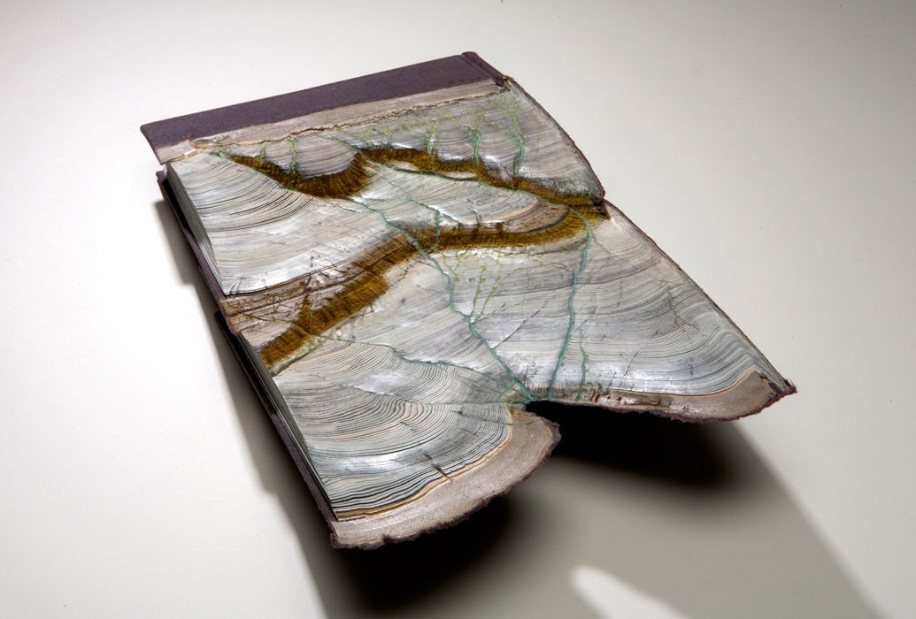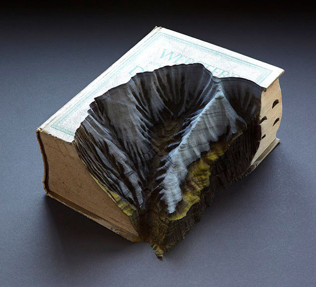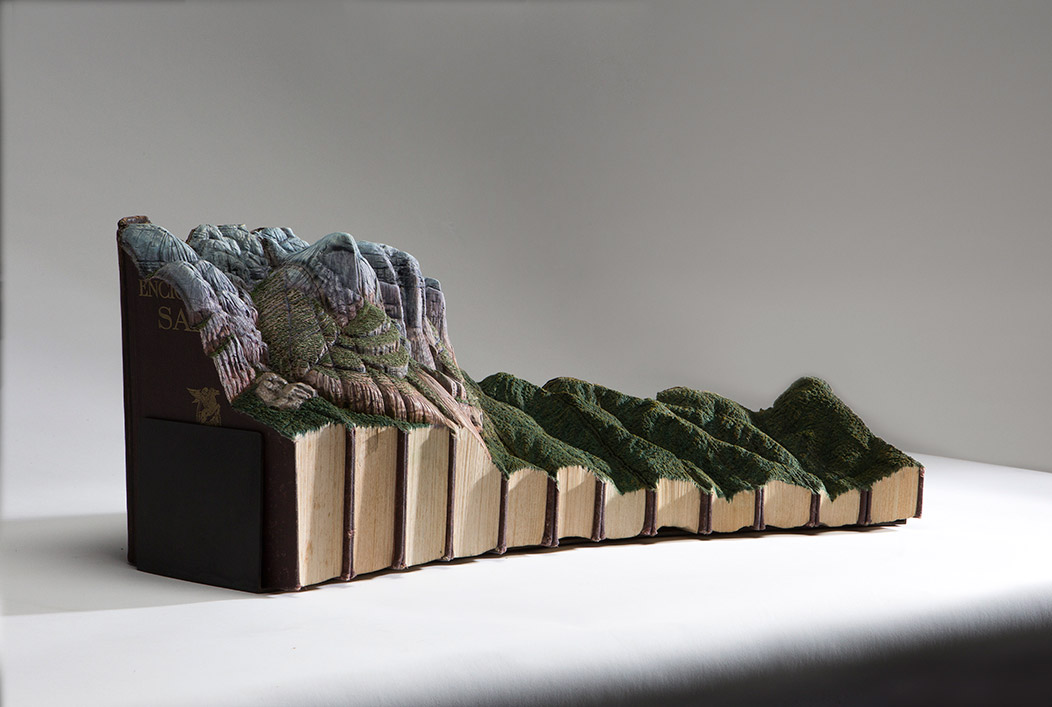 Another batch of carved books by Montréal-based artist Guy Laramée (click here for previous posts). See more incredibly detailed landscapes below!