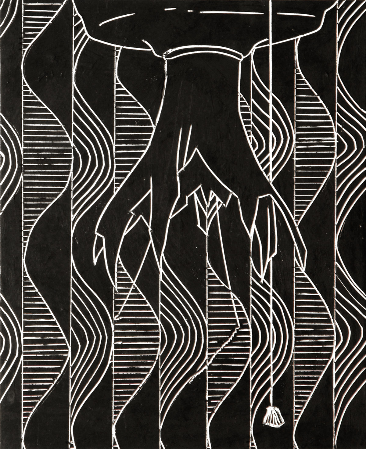 New York City-based artist Michael Aaron Lee covers paper with grease pencil before cutting through with a printmaker’s gouge, uncovering the white underneath. See more images from “Black Drawings” below.