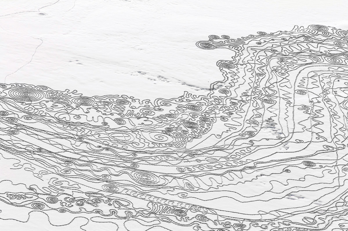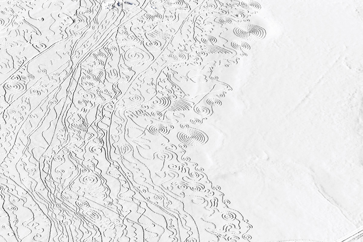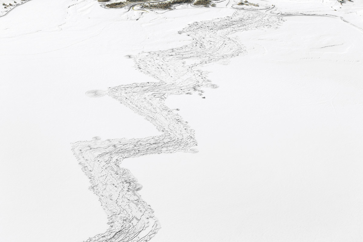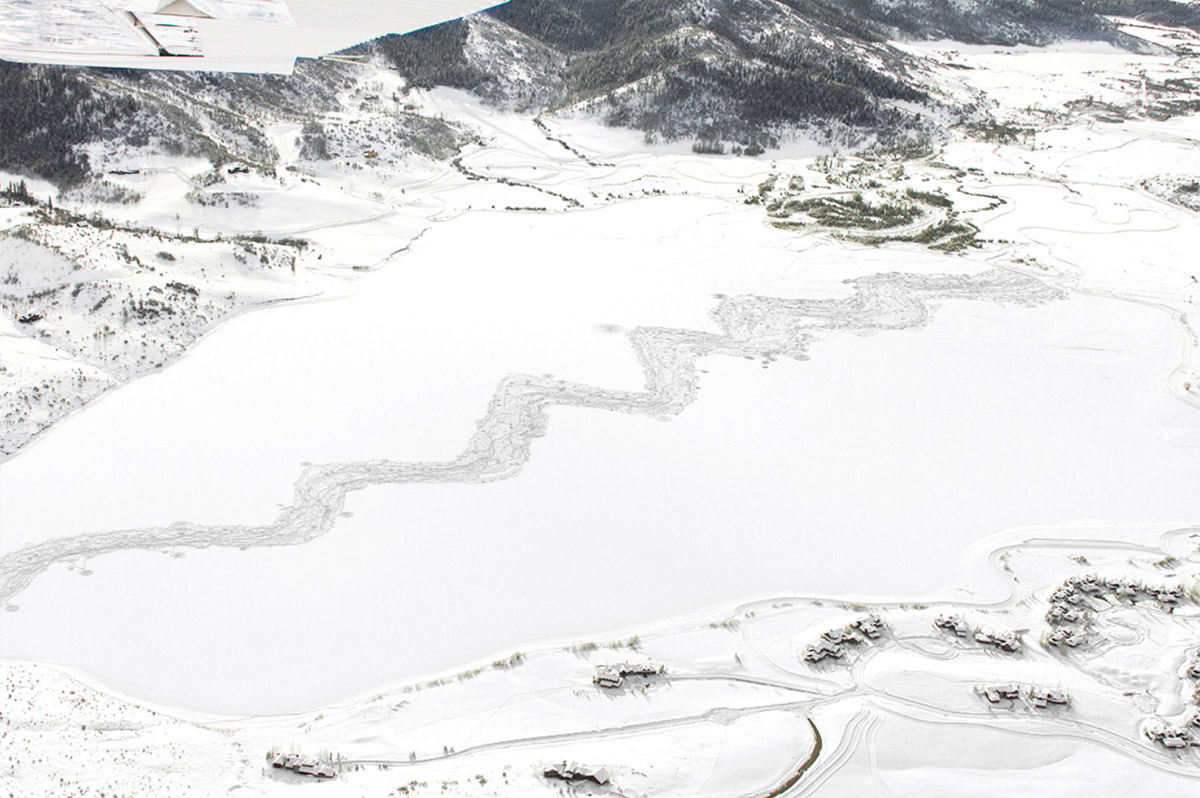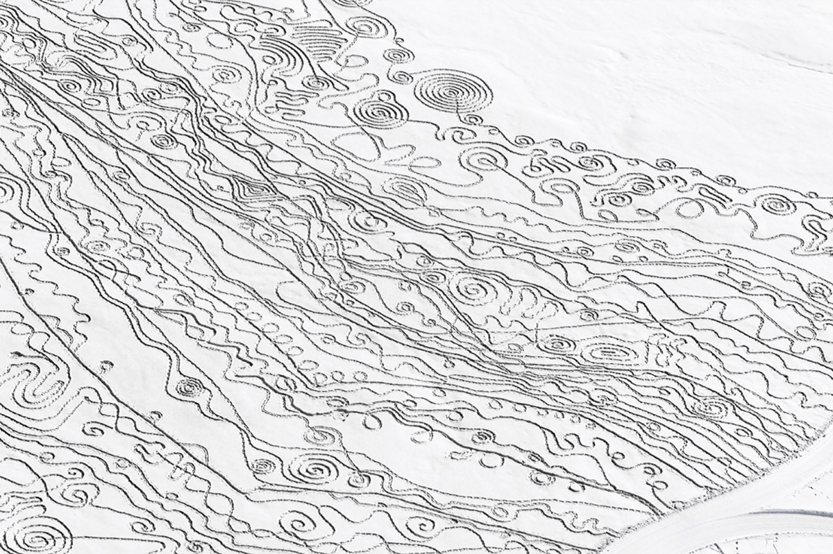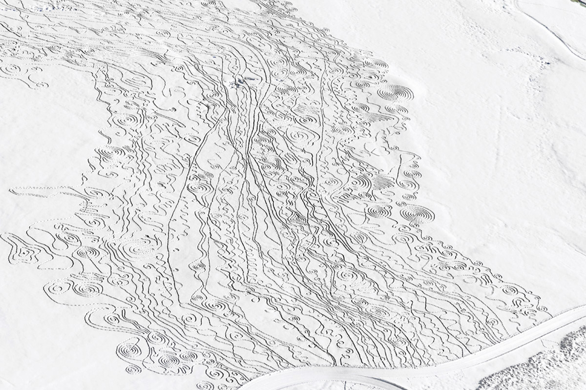 Another incredible snow drawing by artist Sonja Hinrichsen (previously featured here)! Made in the snow covering Lake Catamount in Colorado last year, the site-specific piece pays homage to the Yampa River which used to run through the valley.