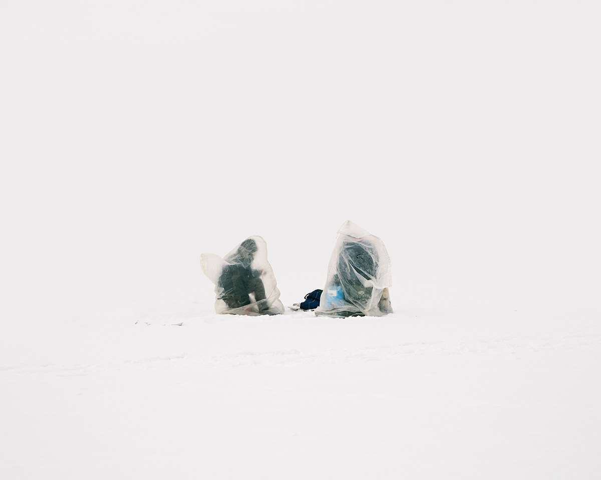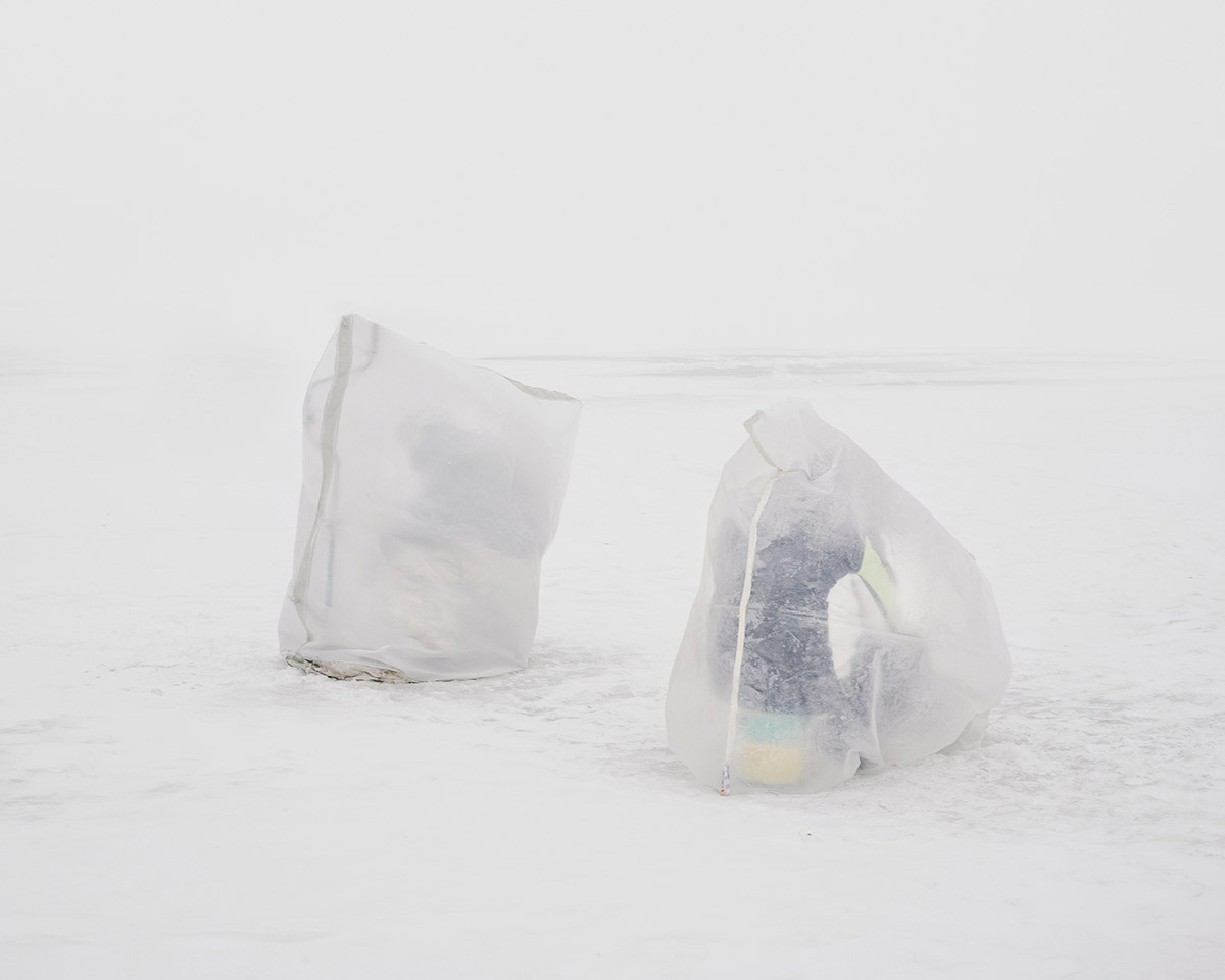 Photographer Aleksey Kondratyev captures the sculpture-like figures of ice fishermen in Kazakhstan. Braving -40 degree temperatures, they fashion protective coverings from salvaged pieces of plastic and discarded rice bags. Love this series so much! See more images from “Ice Fishers” below.