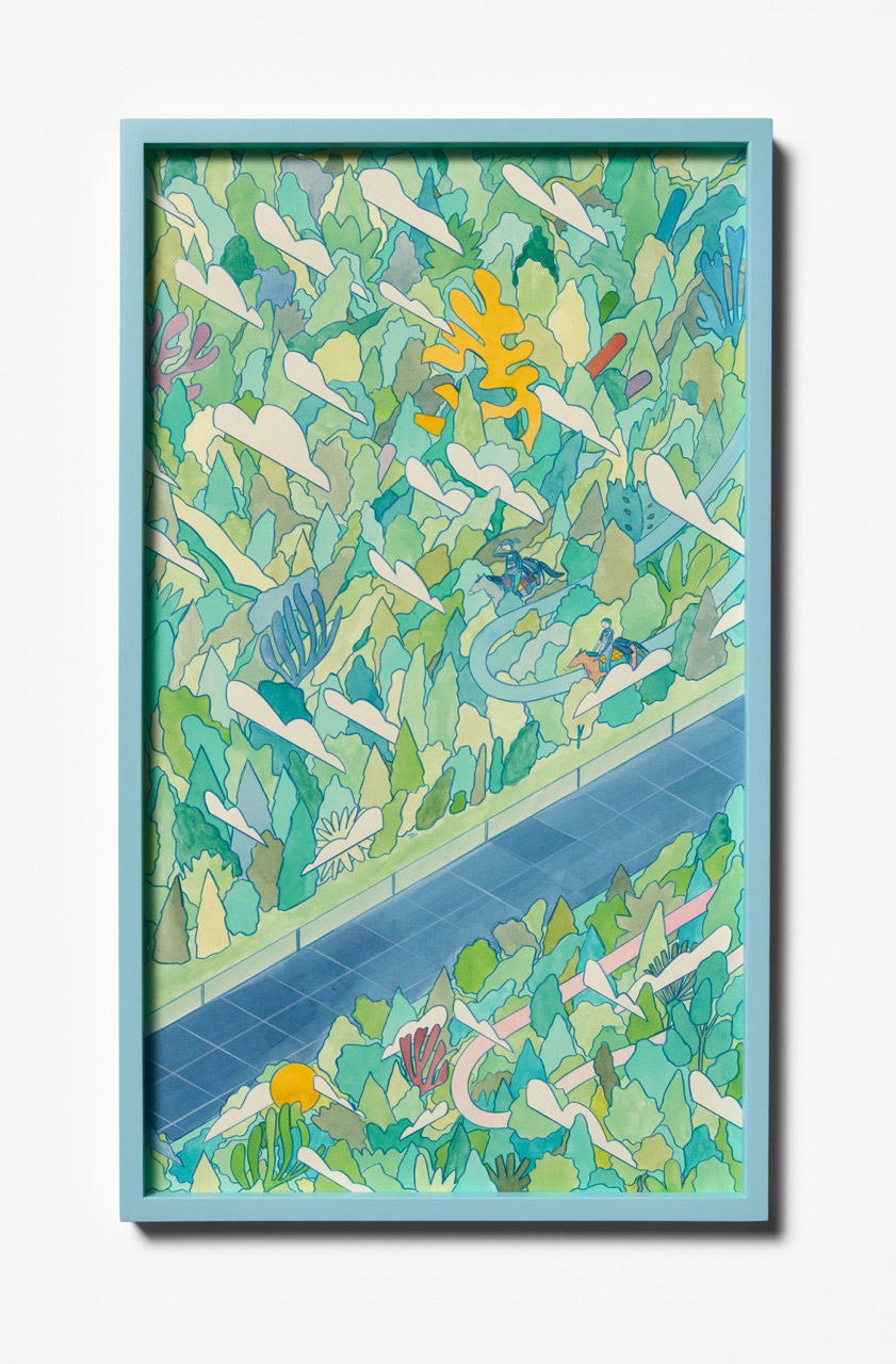 Recent work by Tasmania-born, Australia-based artist David Booth (aka Ghostpatrol). Click here for previous posts. See more images from “Matisse Fan Club” and his latest show “Drift Time,” which was on display at Hugo Michell Gallery just last month.