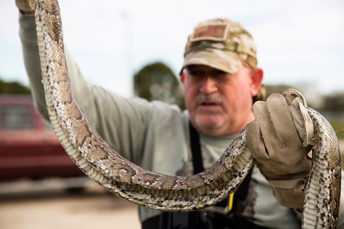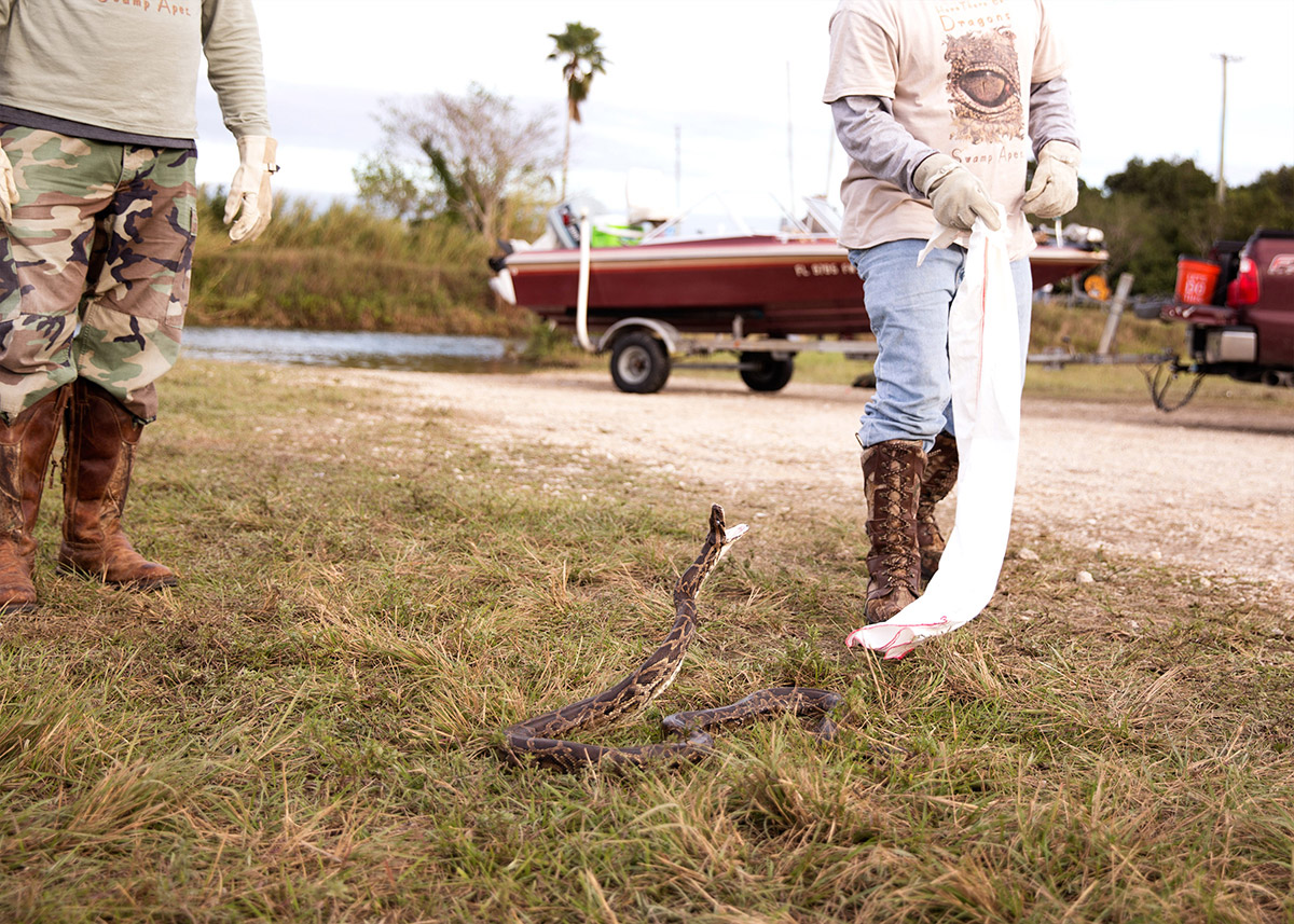 Brooklyn-based photographer Dylan Johnston documents hunters helping to control the Burmese Python population in the Florida Wetlands. See more images from “On The Hunt” below.