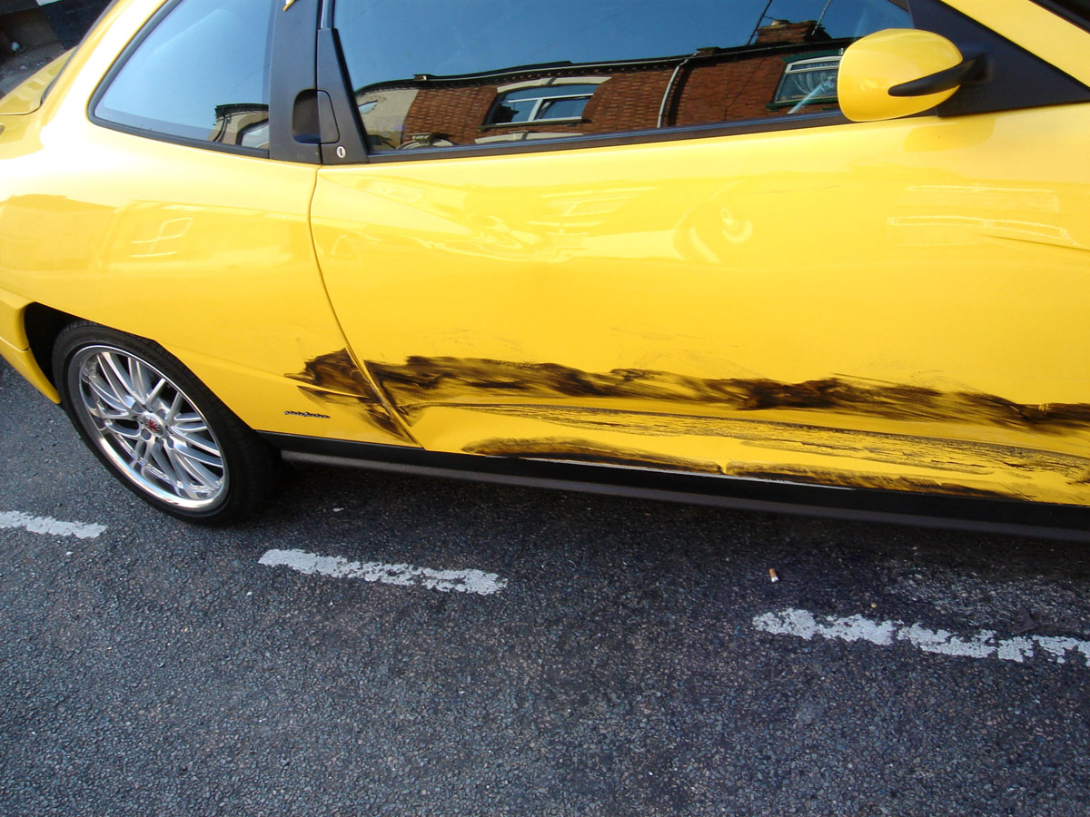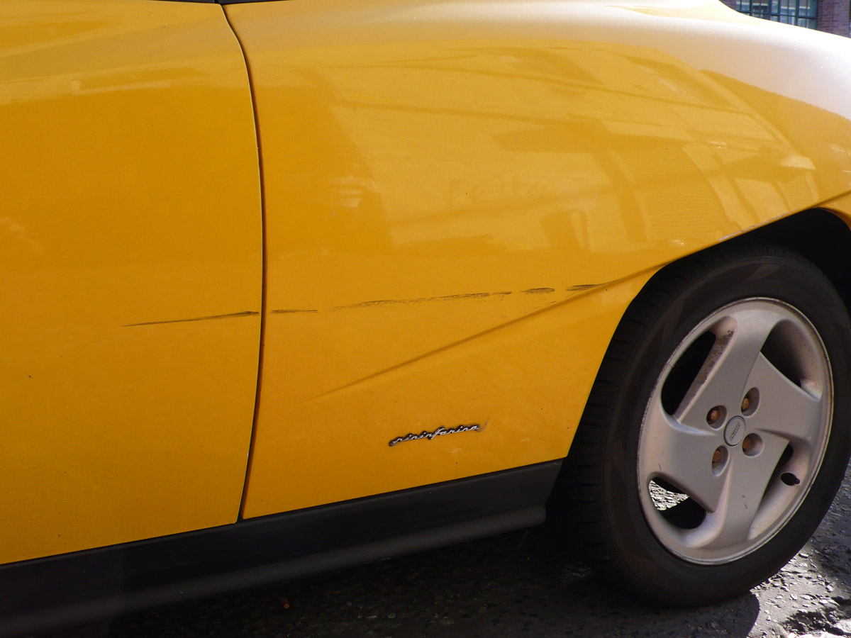 London-based artist Daniel Eatock has been photographing damaged Fiat cars since April of 2000. Designed by Pininfarina with a purposeful slash above the wheel arch, Eatock’s ongoing archive focuses on vehicles that have complementary (although far less intentional) markings to the same area.