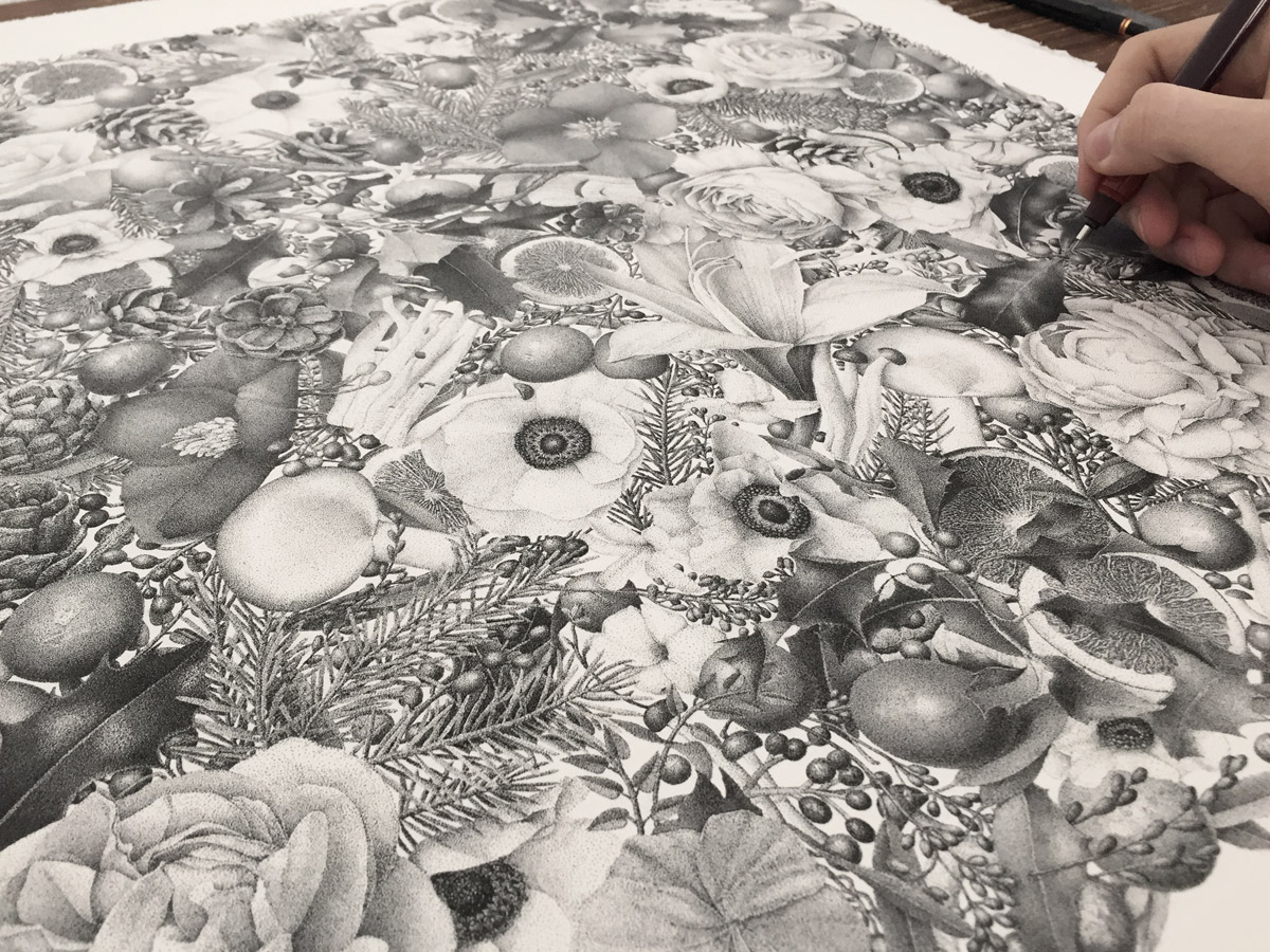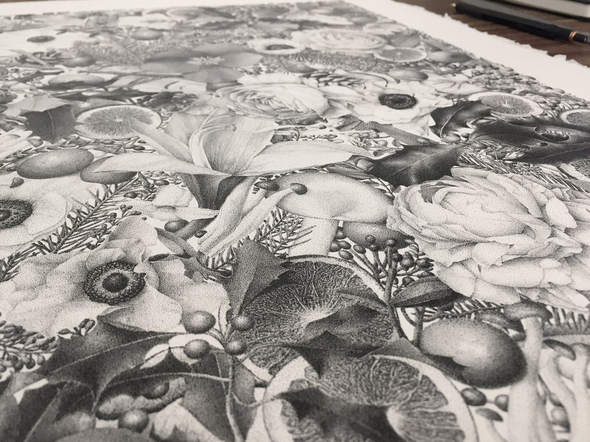 Another incredible stipling project by French artist Xavier Casalta. This one contains 8 million dots and took 400 hours to ink! Click here to see his previous piece, “Autumn,” if you haven’t already. See more images of “Winter” below.