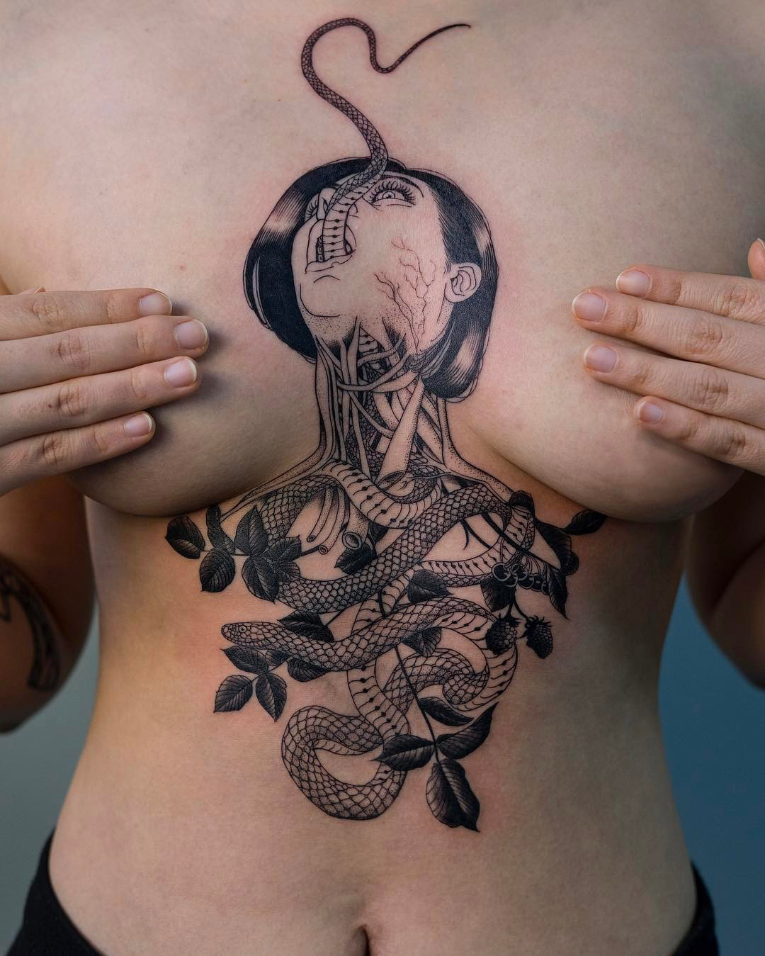 Incredible tattoo work by artist and illustrator Oozy from Seoul, South Korea. See more images below.