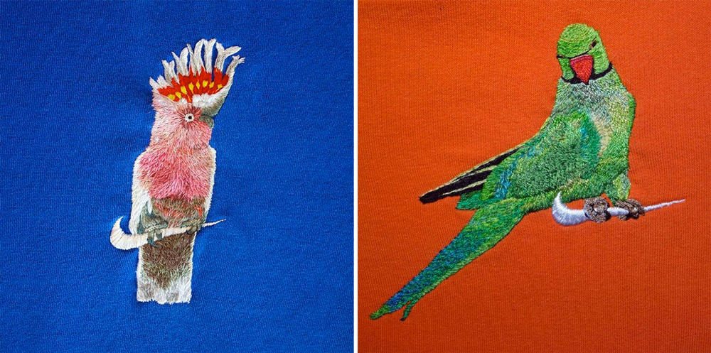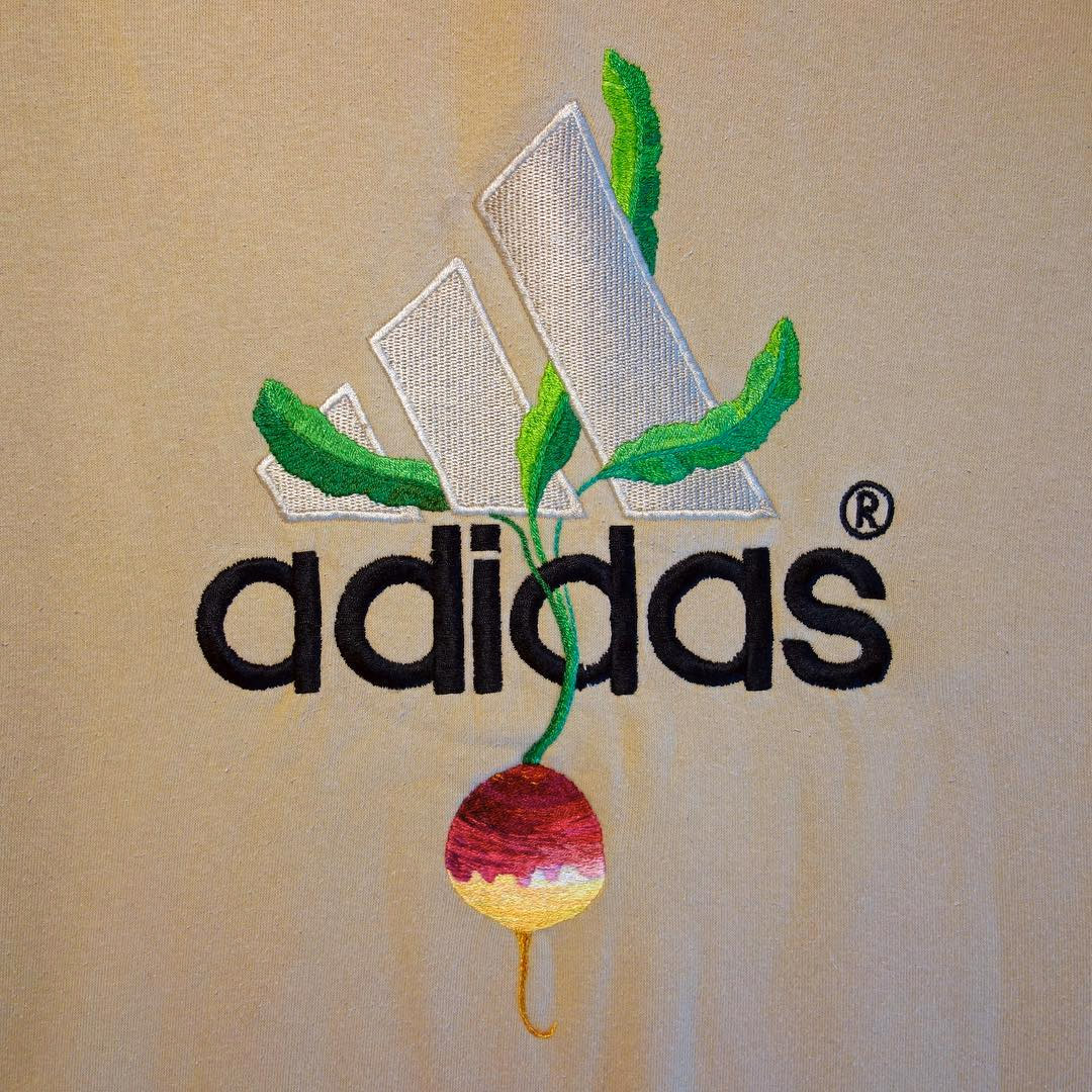 Iceland-based artist James Merry (previously featured here) brilliantly embellishes popular sportswear logos with a series of his own embroidered flora and fauna. See more images below.