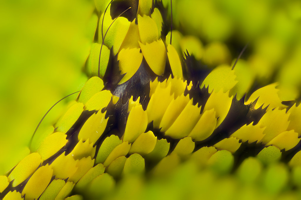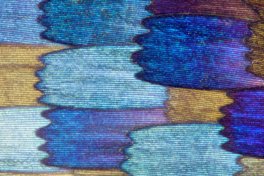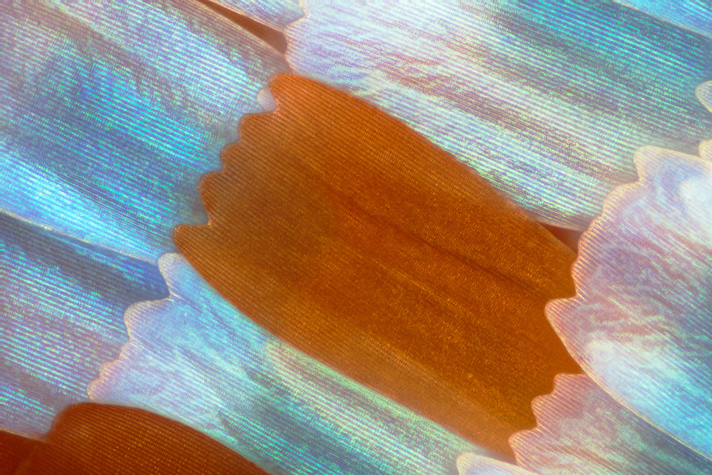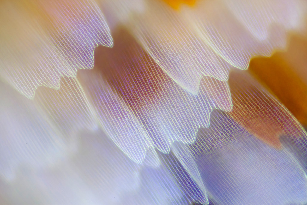 Macro photographs of moth and butterfly wings that look like fish scales by artist Linden Gledhill. More images below.