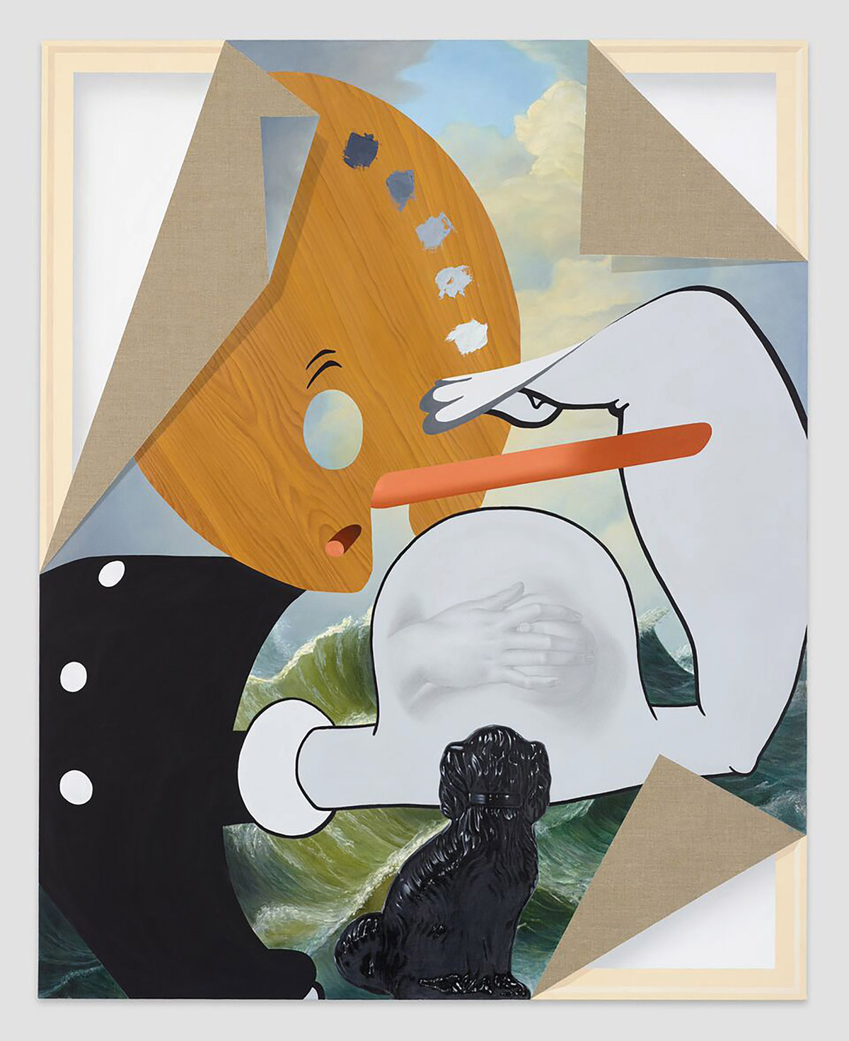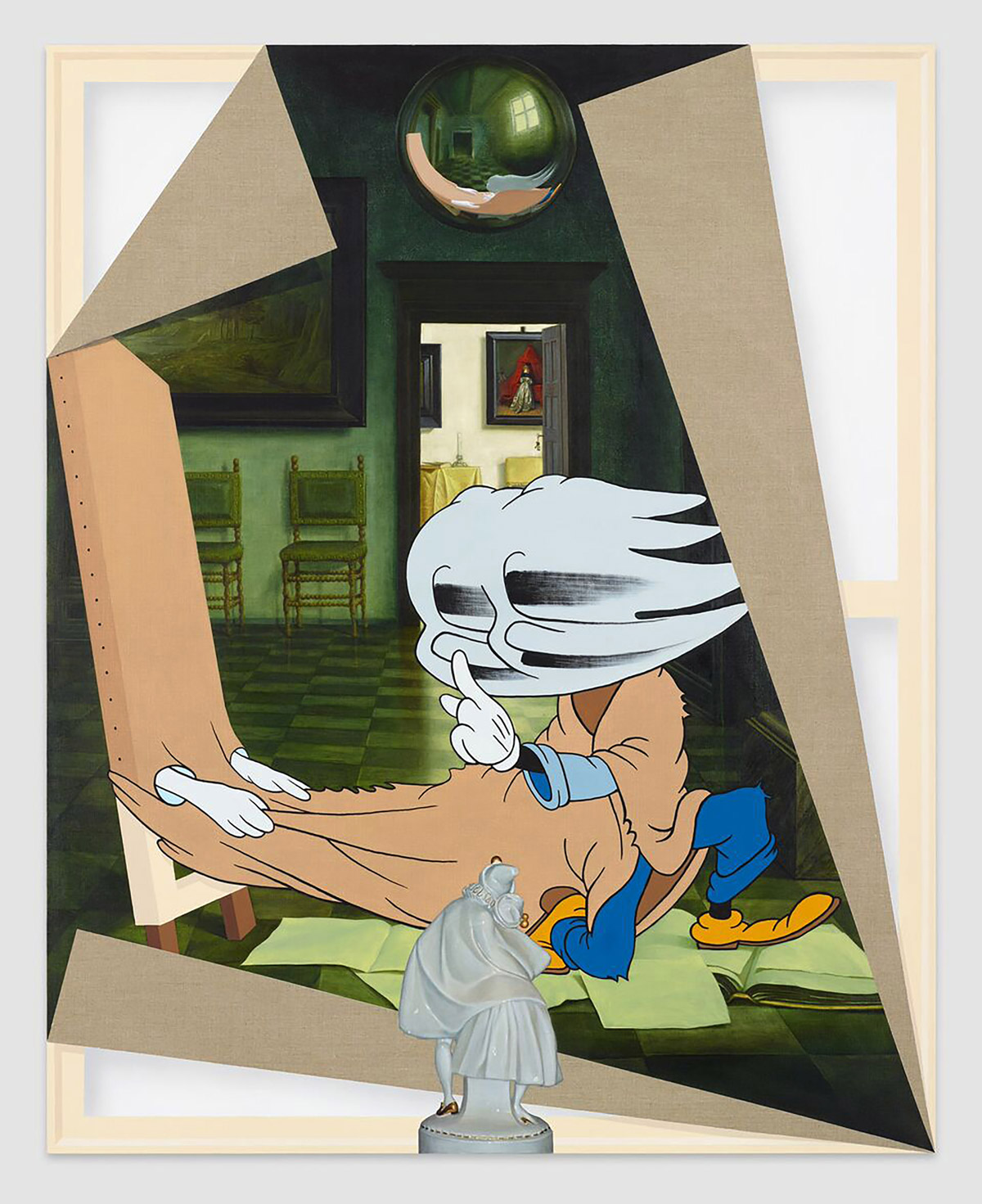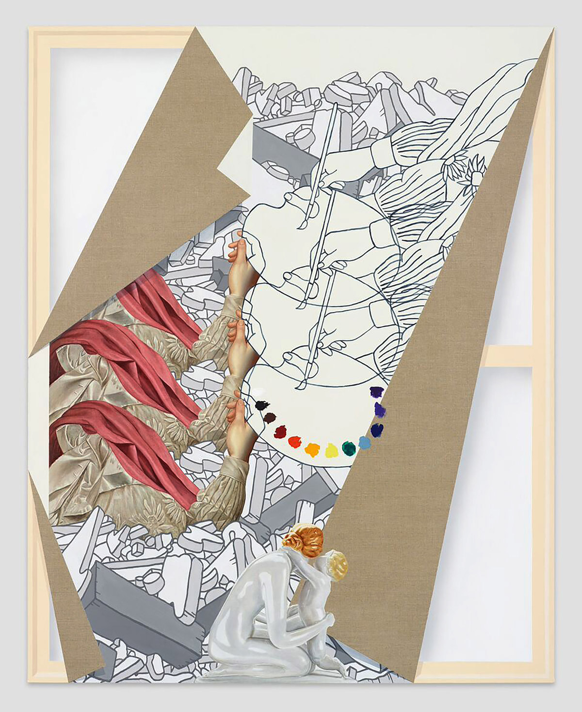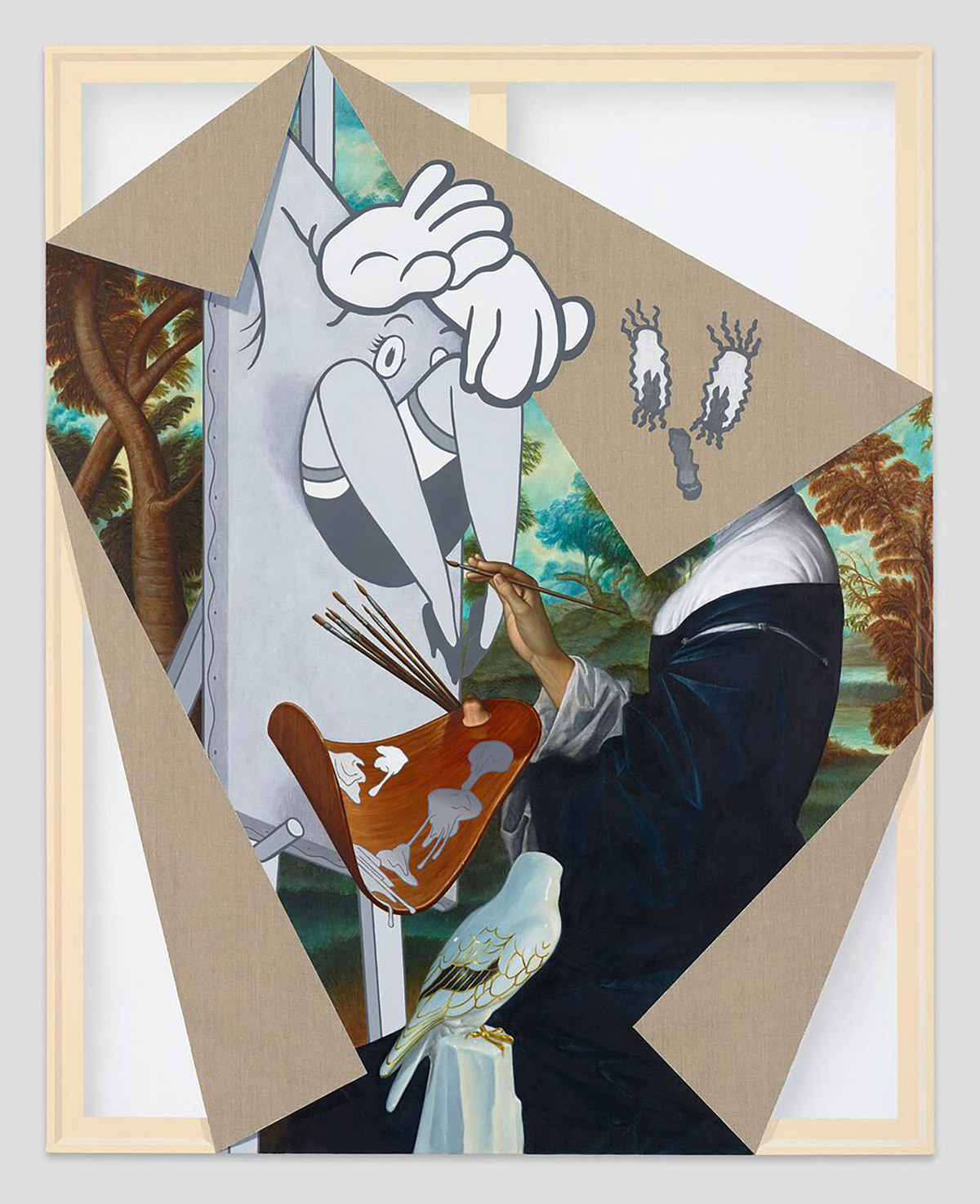 A series of collage-like paintings combining classical imagery with warped cartoons by Brooklyn-based artist Matt Hansel. More below.