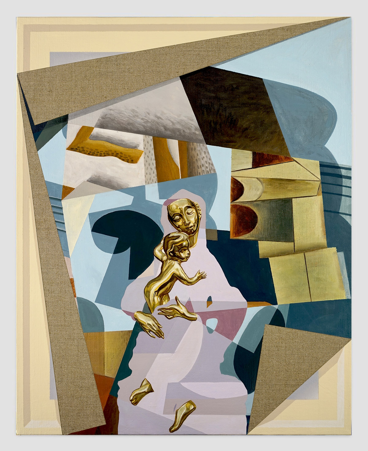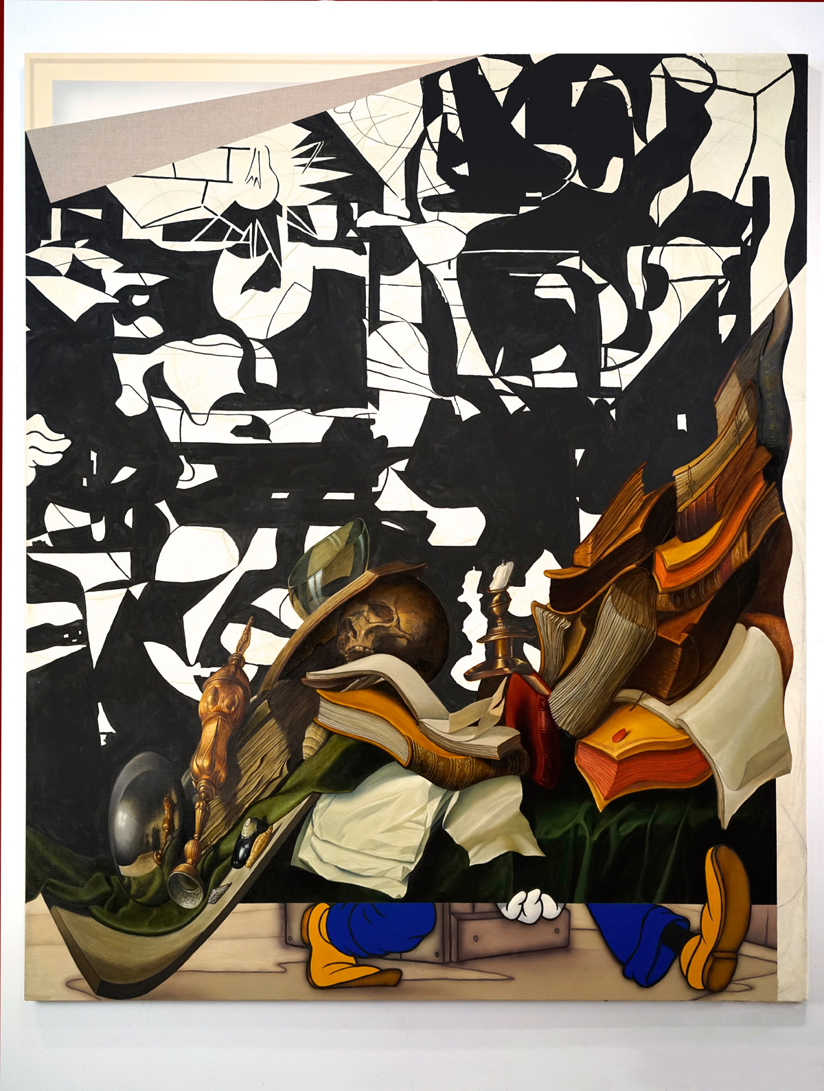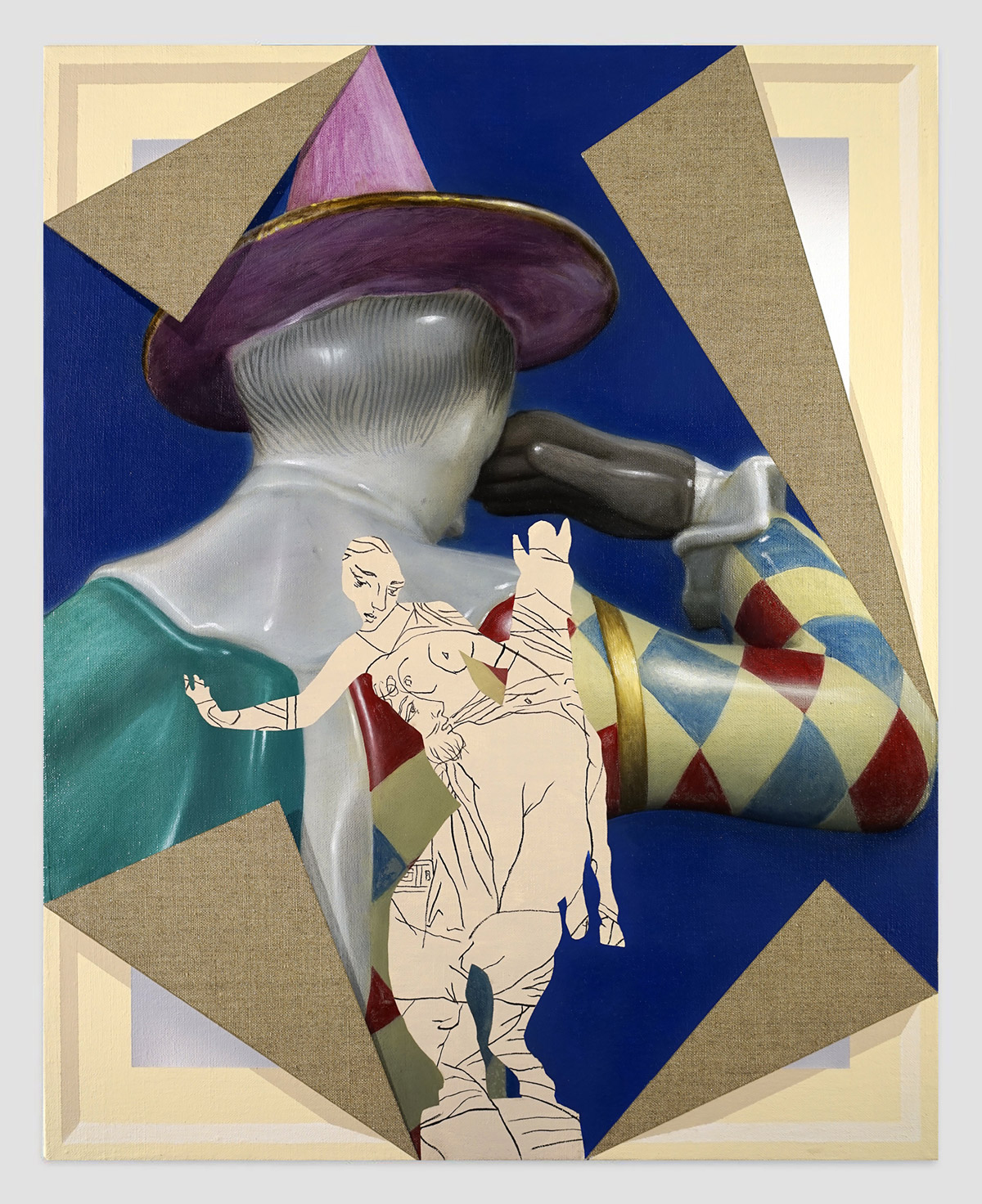 A series of collage-like paintings combining classical imagery with warped cartoons by Brooklyn-based artist Matt Hansel. More below.