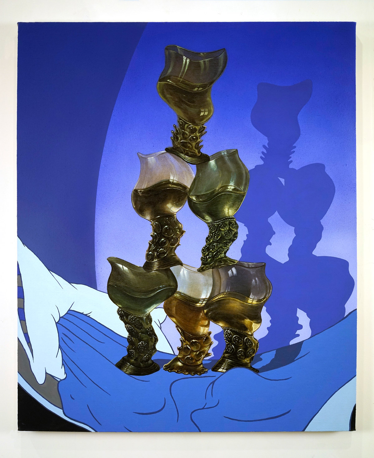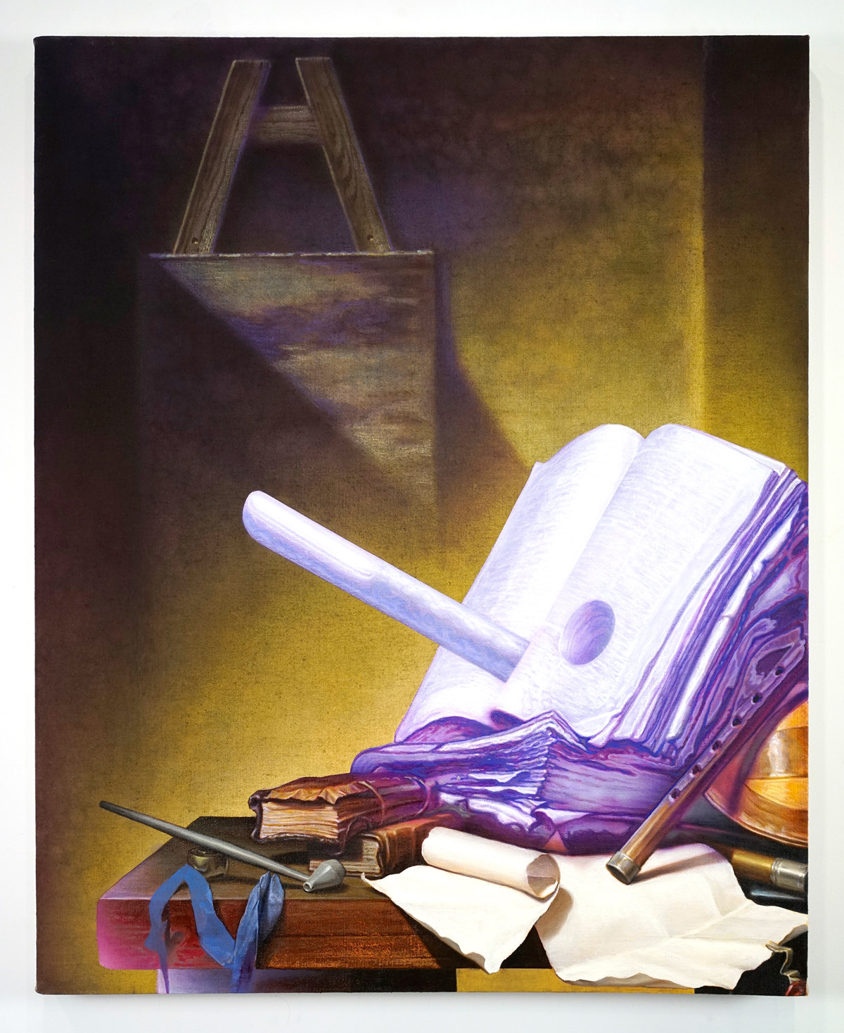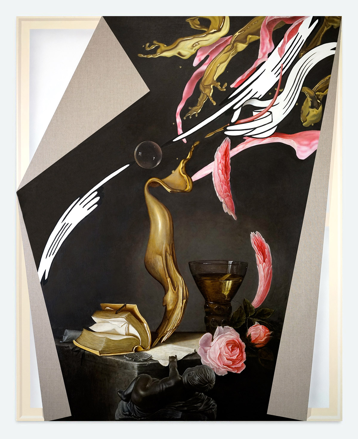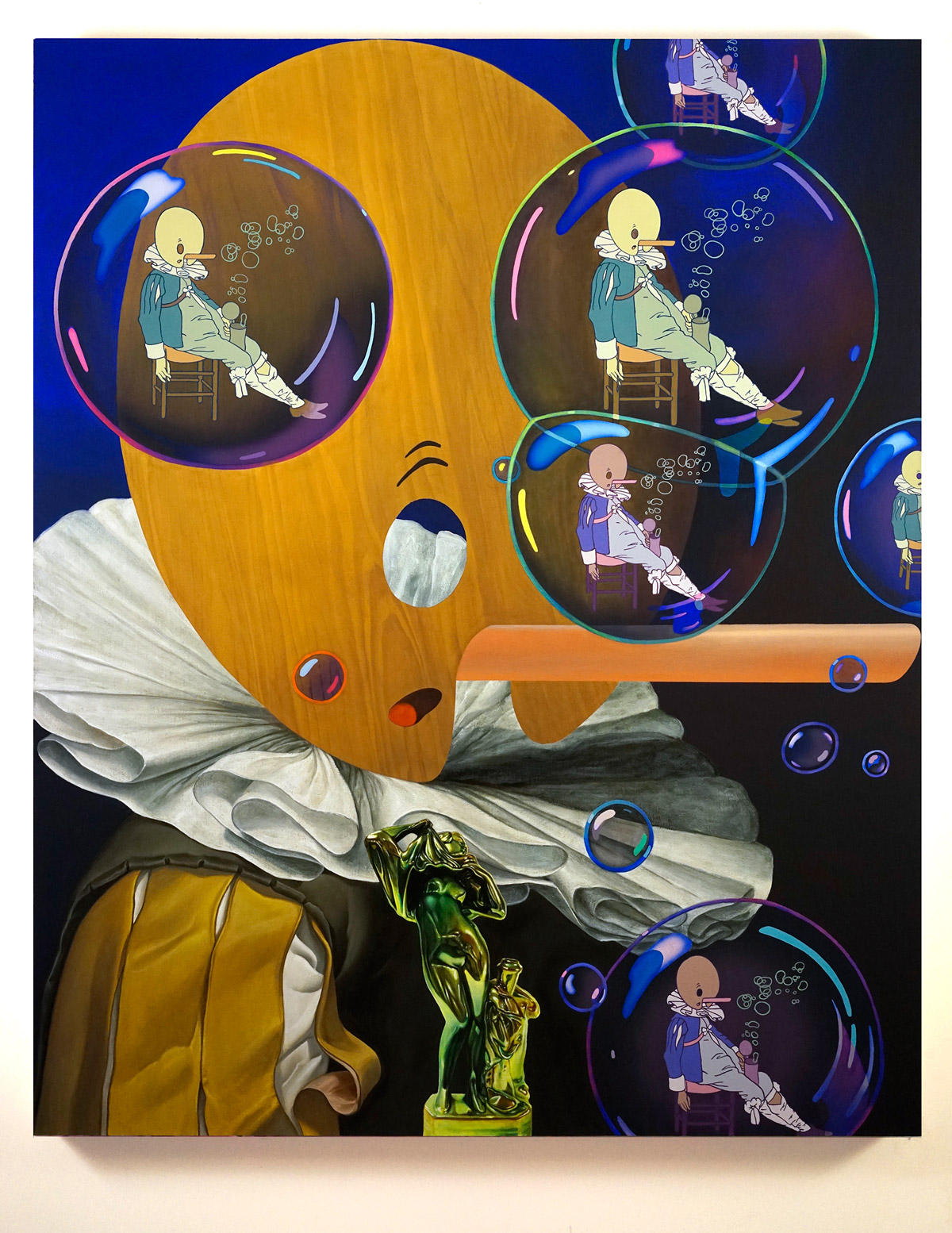 A series of collage-like paintings combining classical imagery with warped cartoons by Brooklyn-based artist Matt Hansel. More below.
