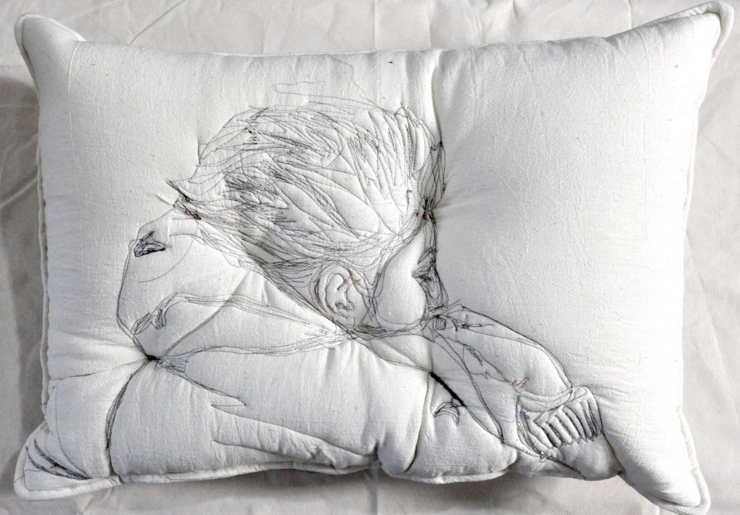 A collection of pillows embroidered with intimate portraits of people sleeping by Iranian artist Maryam Ashkanian. See more images from “Sleep Series” below.