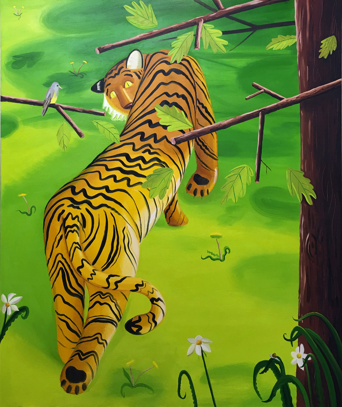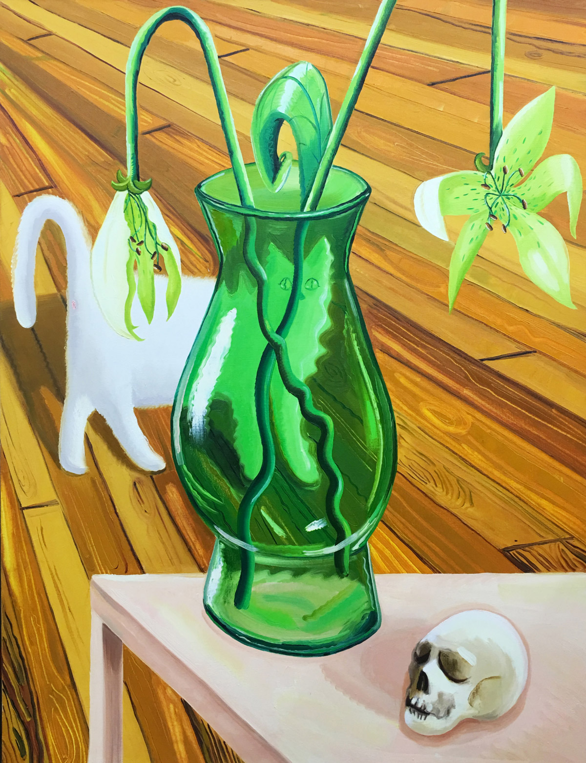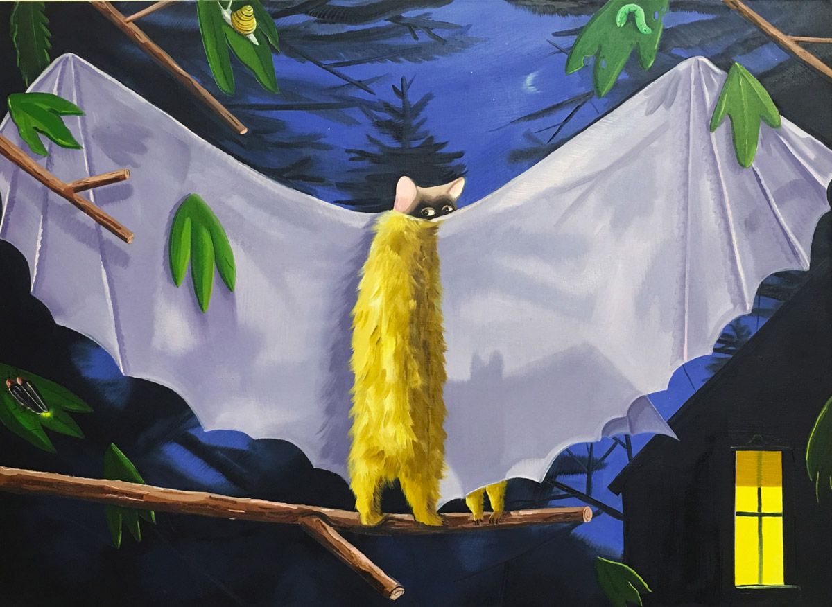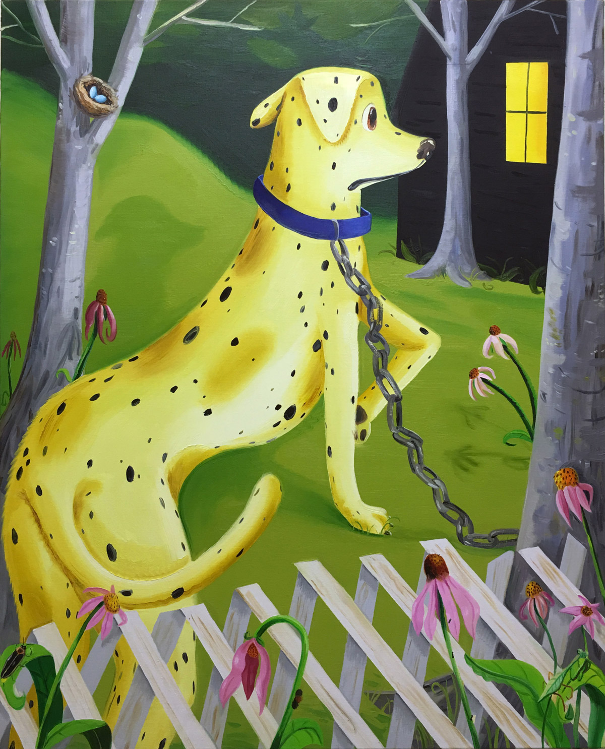 Brooklyn-based artist Nikki Maloof explores loneliness and other human emotions through cartoonish creatures and colours. See more of her semi-narrative paintings below.